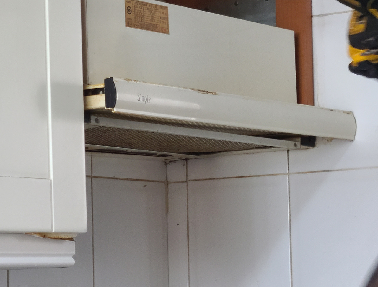 "simple이라고 쓰인 이게 이 후드 만든 회산데 지금은 없어요" ????? "아마 이 아파트 지을 때 달아놓은 거 같은데" ?????? 그렇다. 역사의 뒤안길로 사라진 브랜드의 제품으로서... 사십년 연식으로 추정.