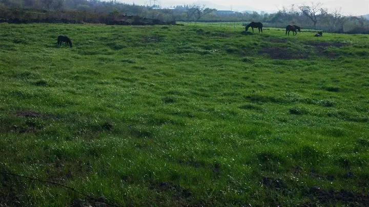 오름 밑자락 드넓은 초원 풀숲 덤불을 뒤지며