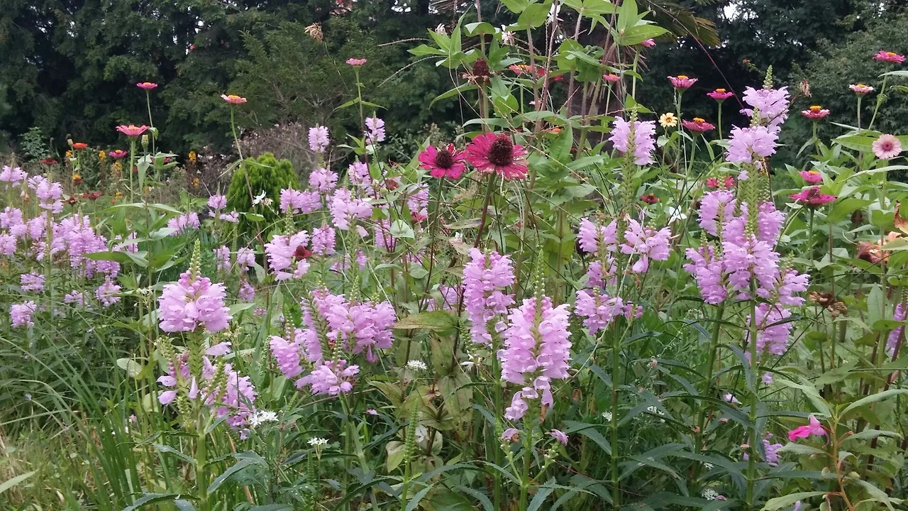 범의 꼬리 무리가 화사하게 꽃을 피우는데