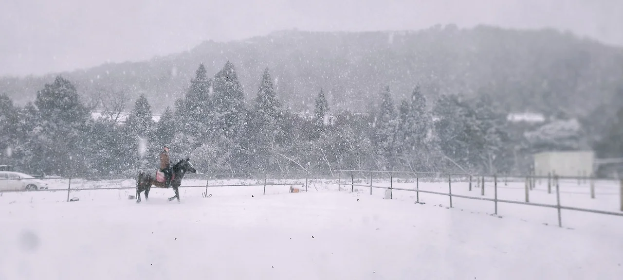 아무도 찾아오지 않는 눈 쌓인 마장.