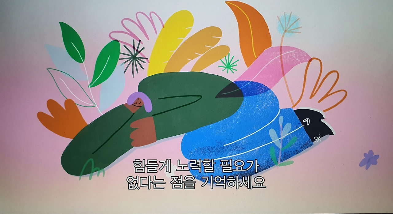 나의 현재는 아무 대가 없이 조용히 ‘함께 해주는 사람들’과 포기하지 않고 어떻게든 살아가는 ‘나’로 구성되어 있다. 어떻게 변해있을지도 모르는 먼 미래보다 현재를 더 사랑하고 챙겨야 하는 이유는 이걸로 충분하다.