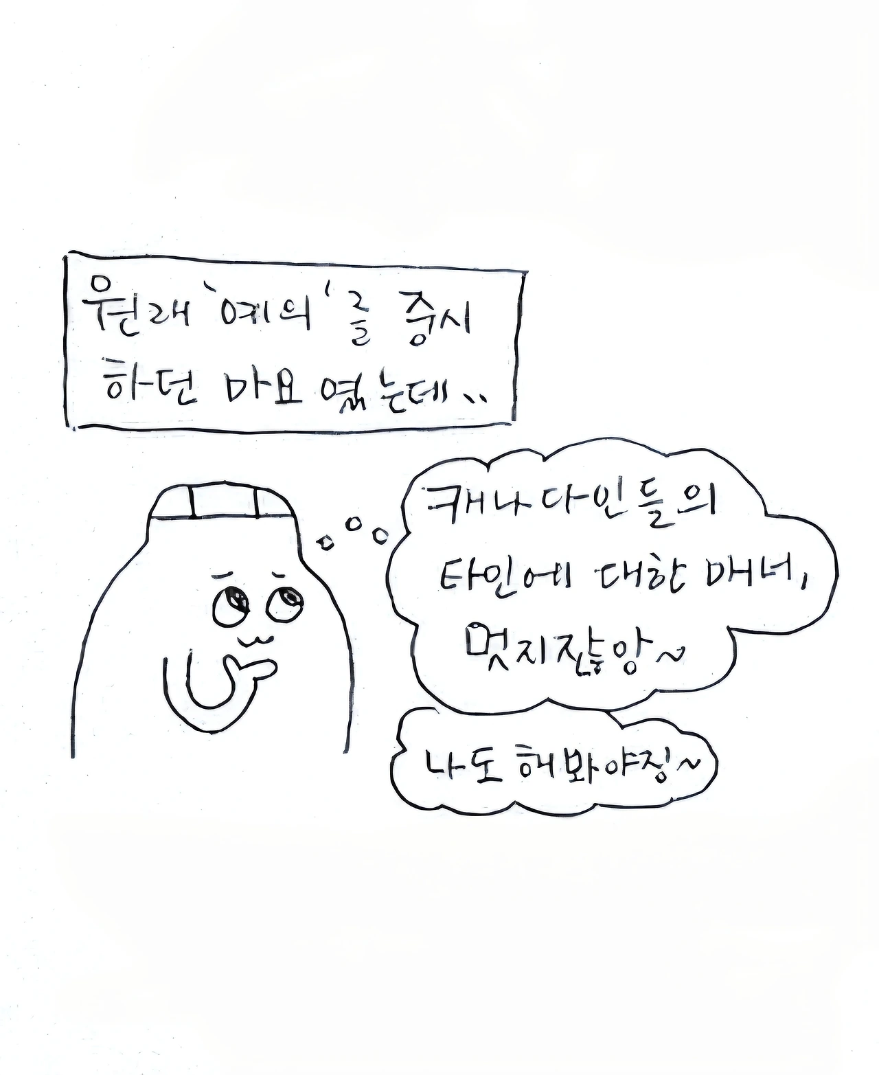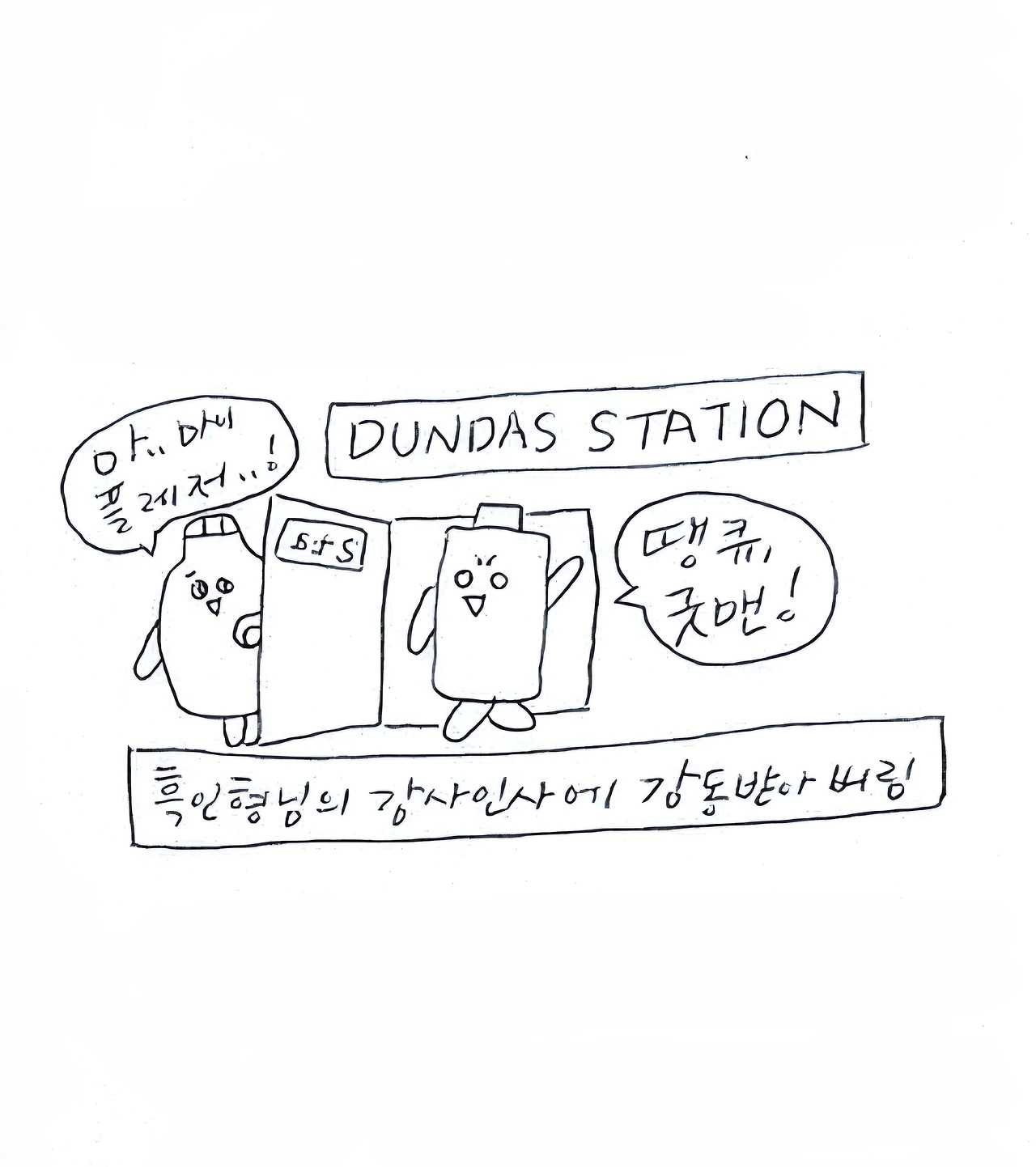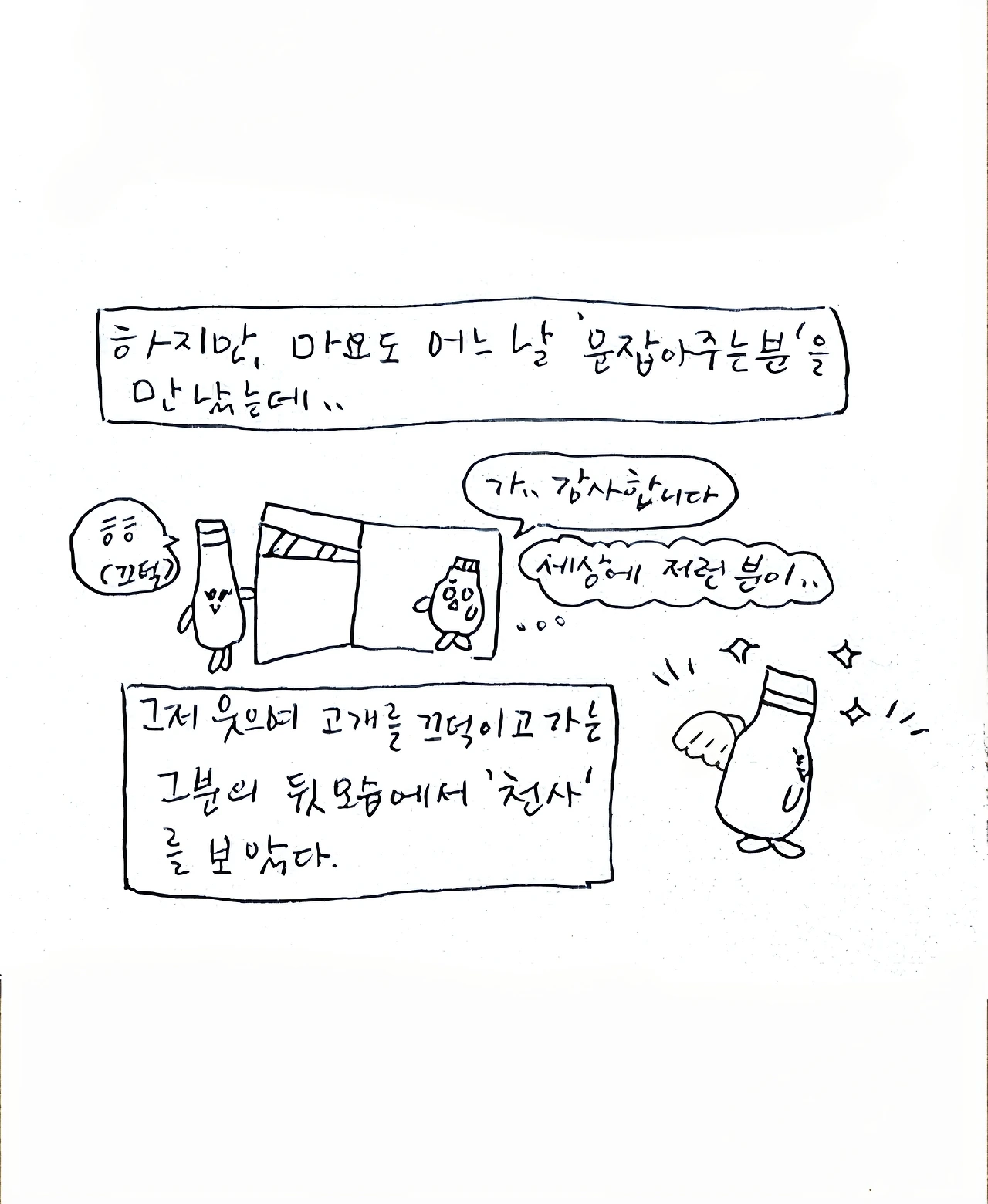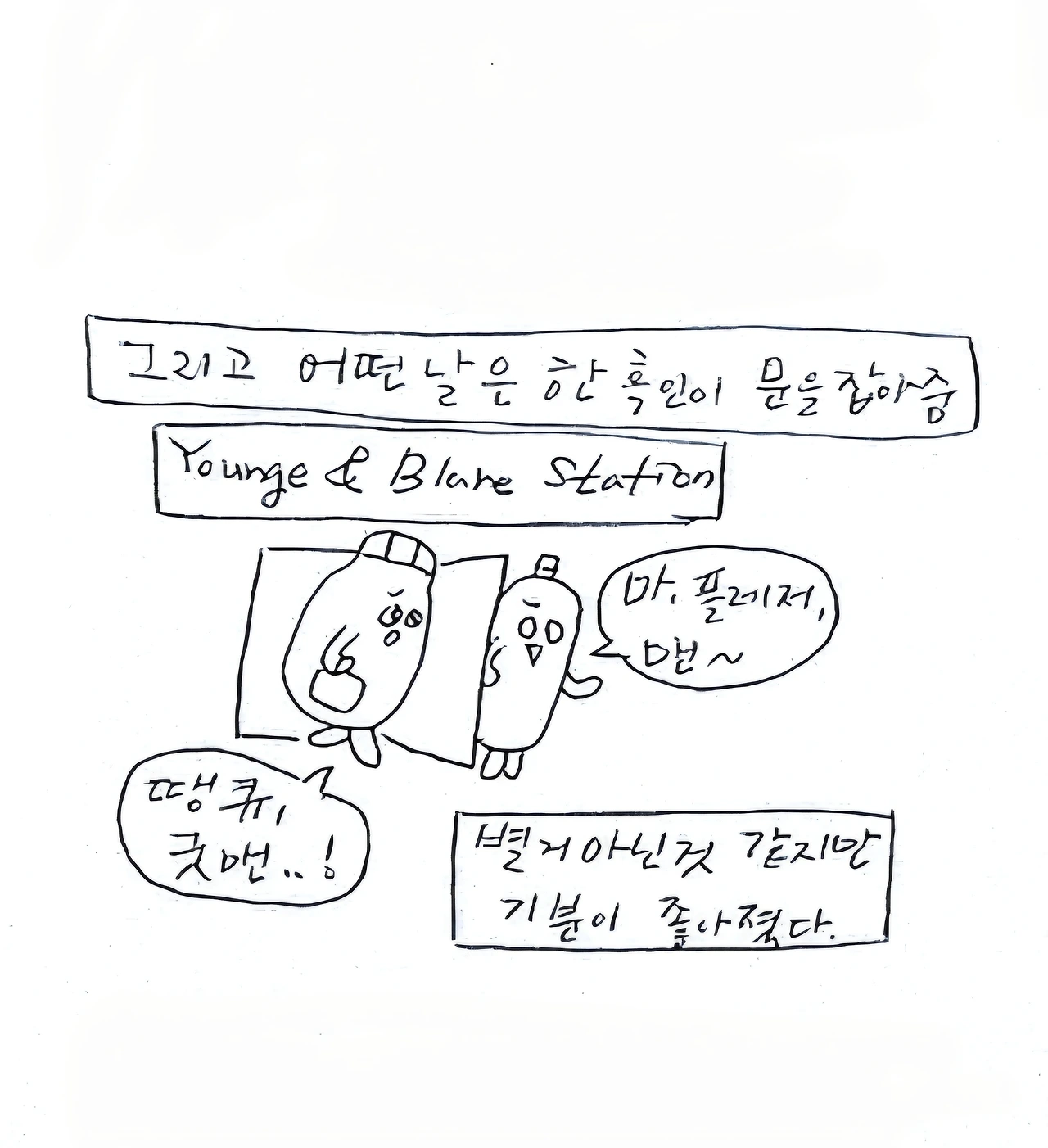 거 참, 문 잡아주면 뒤에서 잡아줘요. 몸만 쏙 빠지지말고/