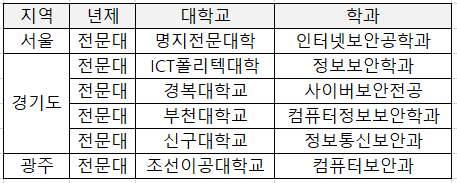 <국내 일반 4년제 대학교 정보보안 특화된 학과>