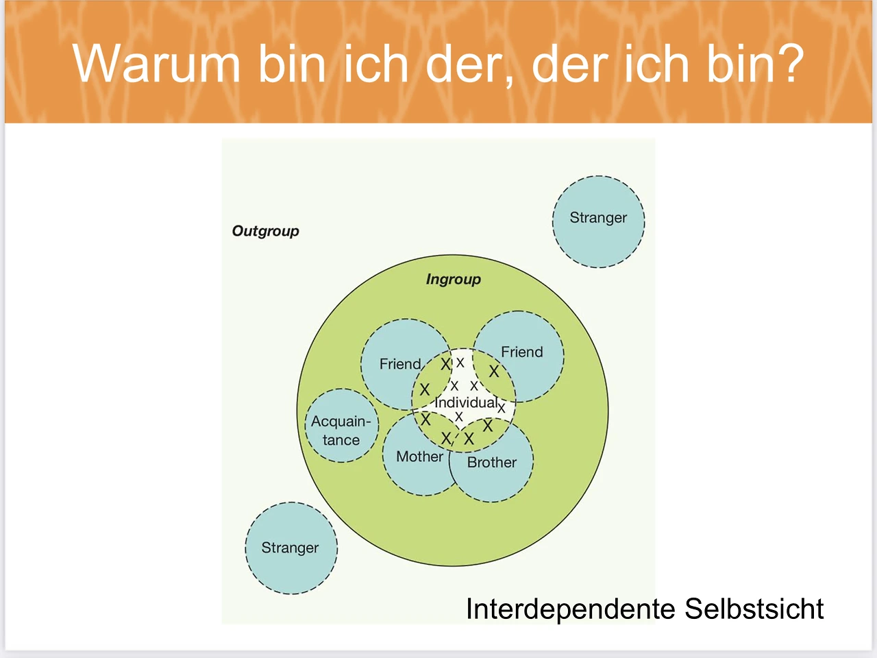 “상호 의존적 자아상”이란 무엇일까? 독일어로 Interdependente Selbstsicht라고 쓰는 상호 의존적 자아상이란, 다른 사람이 나를 어떻게 판단하는지 많이 의식하며, 보통 “대상으로서의 자의식”을 갖는다. 그렇기 때문에 상호 의존적 자아상을 가진 사람이라면 마치 내가 이 세상을 통해 평가받고 있는 것처럼 자기 자신을 끊임없이 의식하고, 나 자신을 사회적 대상이라는 하나의 객체로서 경험하게 된다.