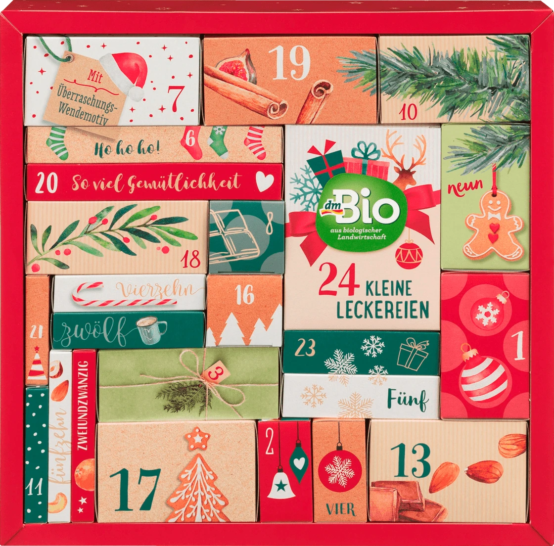 사진에서 보이듯 12월 1일부터 크리스마스이브인 24일까지 매일 하나씩 열어볼 수 있도록 만들어진 24개들이 선물상자 내지는 선물 보따리인 어드벤츠 칼렌더. 독일의 아이들은 12월이 되면 아침에 눈을 뜨자마자 매일 하나씩 이 선물꾸러미를 열어보며 크리스마스를 기다린다.