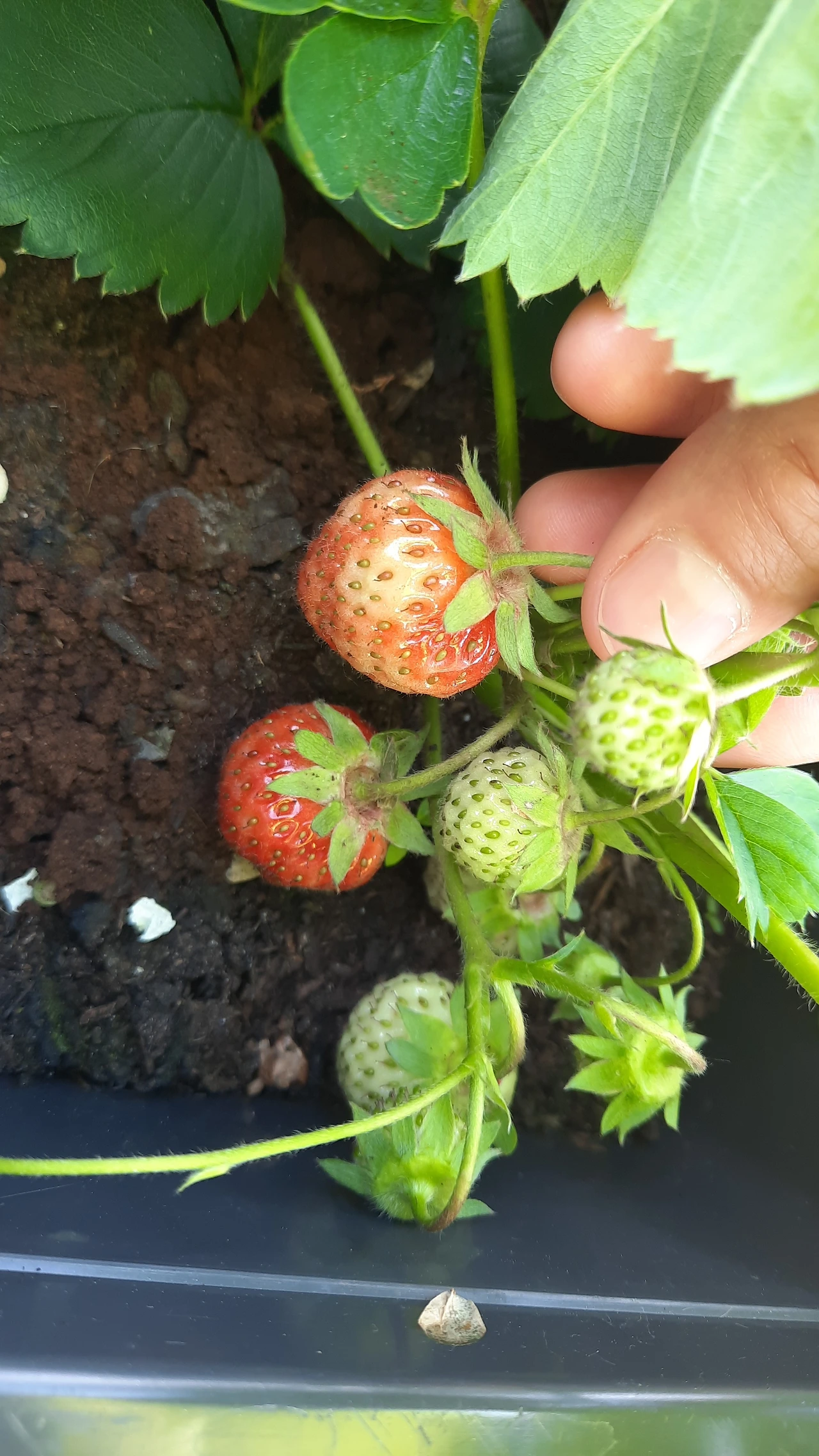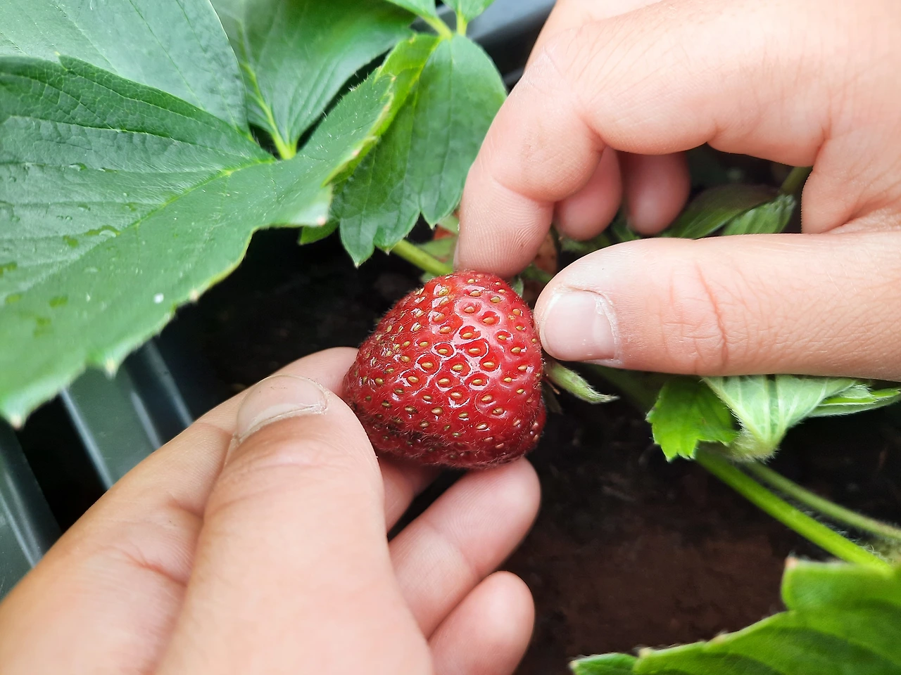 아이와 나는 매일매일 딸기가 얼마나 익었는지 확인하느라 즐거웠다.