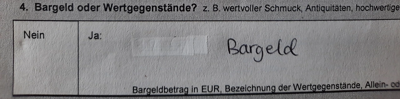 Bargeld라는 말은 현금이다. 서류는 내가 현재 통장에 잔액이 얼마나 남았는지 묻는 것도 모자라 내 귀금속이 몇 개고 집안에 어떤 값나가는 가구가 있으며 지갑에는 얼마의 현금이 있는지까지 묻고 있다. 심지어 현금을 묻는 란에는 네/아니오에 체크도 불가능하다. 현금이 땡전 한 푼도 없는 사람은 없으므로. 이들은 정말로 묻고 있는 것이다.