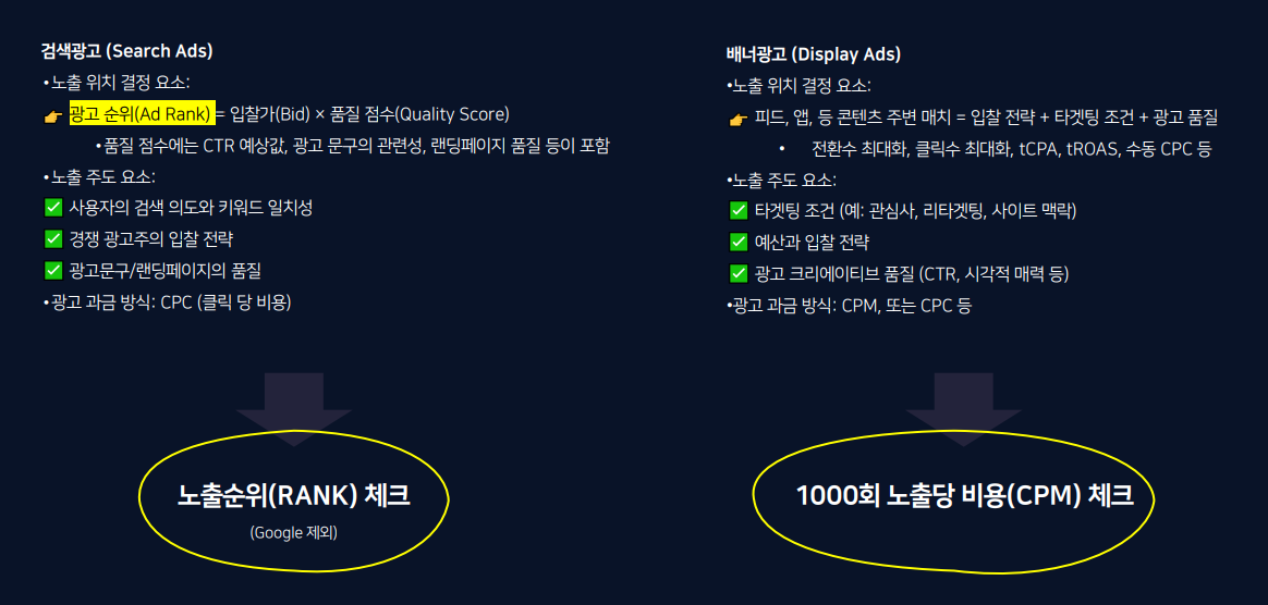 (구글 검색광고의 경우 노출순위 지표는 없으며 '상단 노출 점유율' 개념이 있다. 그래서 이 개념에 정확하게 대입될 수 없기에 이번 글에서는 제외했다. 구글 검색광고에 대해서는 다음에 더 알아보자)