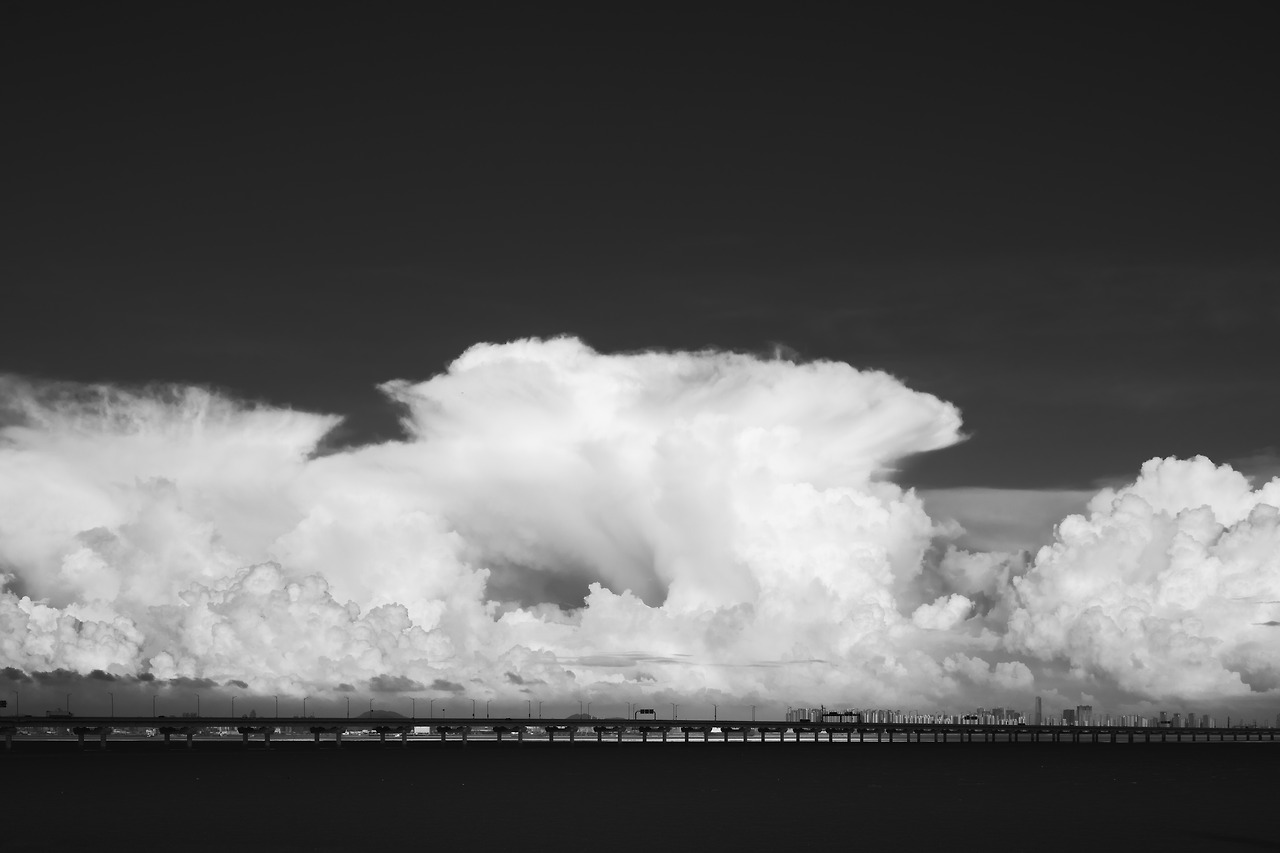 적란운을 정의하는 문장이죠. 다시 말해 저 아래에는 소나기가 쏟아지고 있을 수 있다는 말입니다. 밖에서 보기엔 아름답지만 저 안에선 다양한 물리적, 화학적 충돌 반응이 일어나고 있습니다. 남의 불행이 나의 행복이란 말이 떠오를 정도로 구름 안의 상황과 밖의 상황이 너무나 대치됩니다. 저 안에선 우산을 미처 챙기지 못한 사람이 비를 맞고, 어제 세차를 한 운전자는 갑작스러운 소나기에 짜증을 냈을 겁니다. 비가 오지 않더라도 맑은 하늘을 기대하고 산책 나온 사람들은 갑작스러운 먹구름에 기분을 잡쳤겠죠. 저기엔 바깥 상황이 어떤지 전혀 알 수 없을 정도로 흐려져 있어 그곳이 얼마나 아름답게 보이는지 알 수 없을 것입니다. 하지만 저는 그 반대편에서 서서 흔치 않은 기회를 사진으로 담고 있으니 참으로 아이러니한 상황이 아닐 수 없네요.