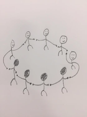 요즘은 자꾸만 손에 손잡고 있는 우리가 다행이다 싶다가도, 우리의 시선이 안을 향하는지, 밖을 향하는지 고민하게 됩니다. 전 visual thinker라 아래와 같은 낙서도 해 봅니다. idealist스러운 말이지만 손을 안으로 잡고 안을 들여다 보면 우리는 원 안에 속해 있는 서로를 그리고 같은 것을 바라보게 되므로, 매우 평화롭고 편안합니다. 그러나 손을 거꾸로 잡고 밖을 바라 보면 다른 세상이 보입니다. 손을 잡은 개개인이 다양한 다른 세상을 보게 됩니다. 우리는 아주 작은 원이라는 것을 깨닫게 되고 아파할 줄도 알게 됩니다. 글쎄, 좀 냉정하게 들릴지 몰라도 성수동에서 일하는 우리는 손을 잡되, 시선은 밖을 향해야 하는 것이 아닌지 모르겠습니다. 혹은 안을 보더라도 잡은 손이 많아져서 원이 커-지는 것도 방법이겠으나 실행가능하지는 않다는 걸 압니다. 하여간 밖을 바라보는 것이 이 곳에 둥지를 튼 중간 지원 기관들이 고민해야 하는 stance가 아닐지 생각해 봅니다. 자세한 이야기는 다음 주에 정리해 보겠습니다.