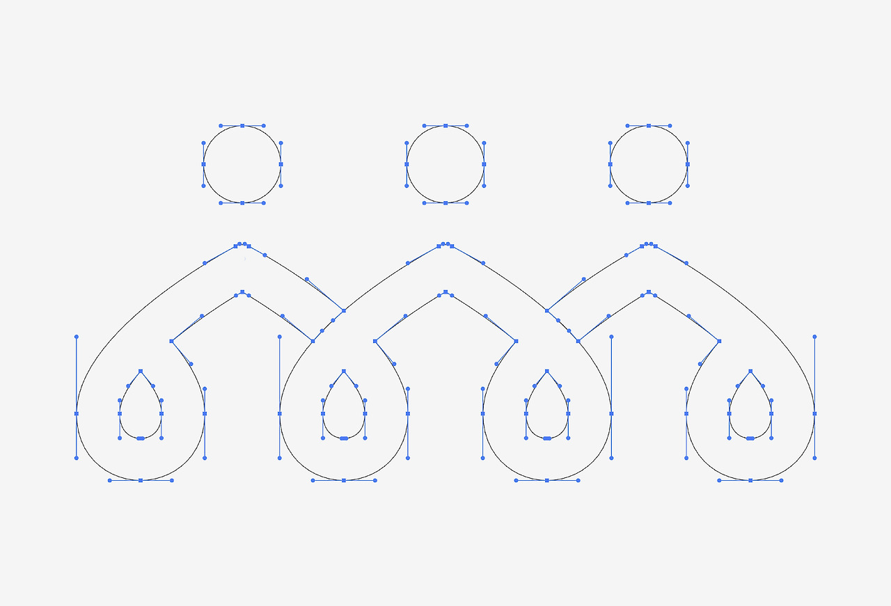 이 그림은 심볼 이미지를 마치 엑스레이로 찍어봤다고 생각하시면 돼요. 왜 이걸 굳이 보여드리냐면, 기존 심볼이 가지고 있었던 벡터 값을 전부 조정했다는 것을 자랑하고 싶었어요. 기존 심볼의 불필요한 포인트들을 모두 제거하고 단순화하면서 형태적으로 매끄럽게 다듬은 거죠. 그리고 심볼의 크기가 작아졌을때도 좀 더 명료하게 보이도록 디테일을 가다듬었어요. 한 마디로, ‘다시 그렸다’는 이야기예요. 덤으로 파일의 크기도 줄이는 효과를 얻었죠. 티는 안 나지만, 보고 있자면 마음이 편해지는 디자이너로서의 즐거움을 추구했어요. 분명히 눈에 보이지는 않지만 완성도에는 영향을 미치는 중요한 부분이라고 생각했기에 꼭 이야기하고 싶었어요.