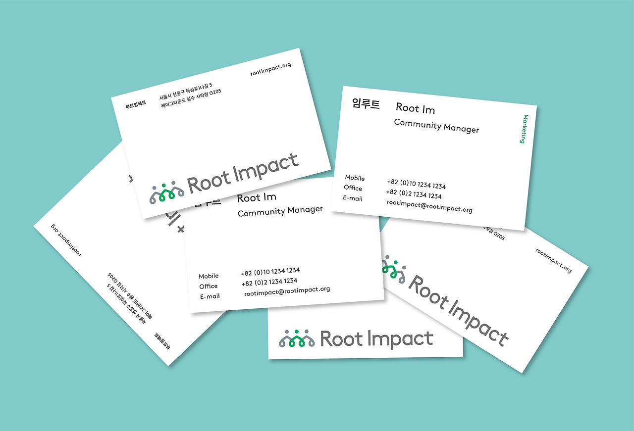 지금까지 브랜드 자산 서베이를 통해 루트임팩트가 브랜드 리뉴얼을 하게 되었다는 소식을 전하면서 루트임팩트의 새로운 얼굴을 공개했는데요. 추석 연휴가 끝나고부터 명함, 이메일 서명, PPT, 홍보물, 문서, 소셜미디어, 유튜브를 통해서도 새로워진 루트임팩트의 모습을 만나보실 수 있어요.