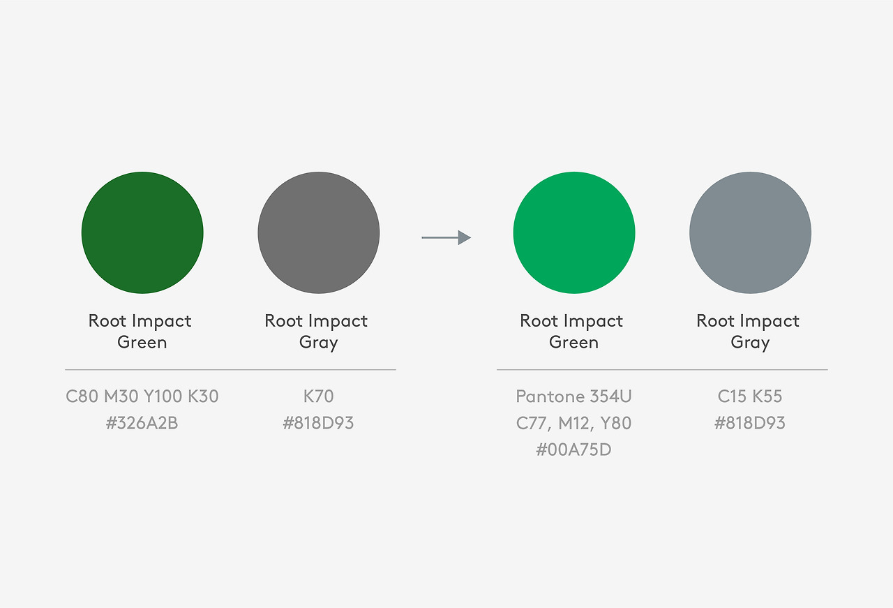 그래서, 루트임팩트는 많은 고민 끝에 Lineto사의 “Brown”을 새로운 로고타입의 서체로 선정했어요. 동그라미와 직선으로 이루어진 것처럼 보이는 기하학적 형태를 가진 서체(Geometric typeface)인데요. 개성이 넘치면서도 중도를 지킬 줄 아는, 톡톡 튀면서도 밸런스를 잘 갖춘 모습이에요. 사선으로 쭉 뻗은 R의 다리와, 둥그스름한 a의 모습이 특히 재미있는 서체죠. 이렇게 기본을 지키면서도 개성 넘치는 인상이, 신뢰와 탁월함을 바탕으로 열린 방향, 상상력 넘치는 방향으로 나아가고자 하는 루트임팩트의 브랜드 이미지를 표현하기에 적합하다고 생각했어요.