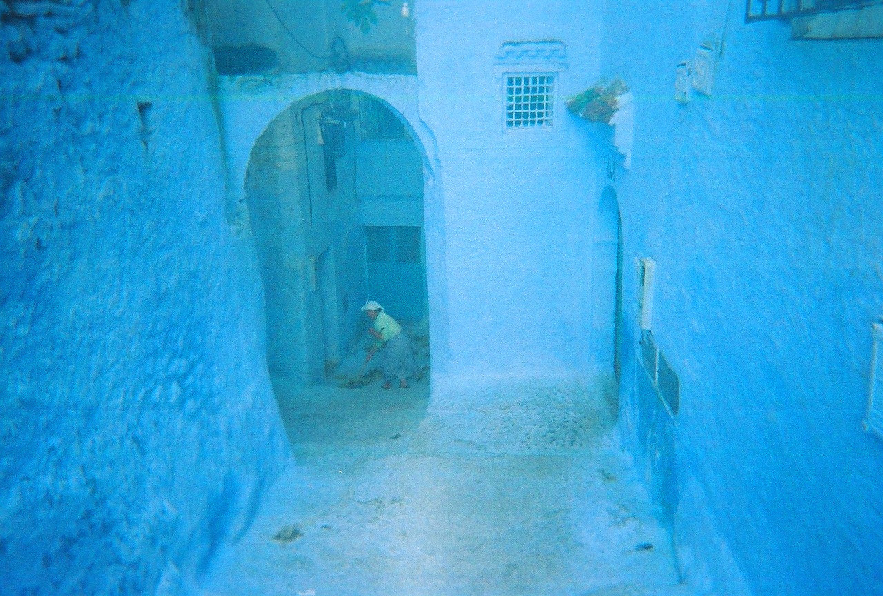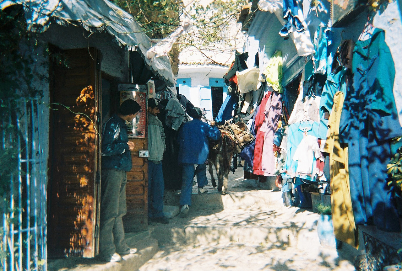 좁은 입구와는 달리 여러 개의 방으로 나누어진 가게 안쪽은 파란 돌벽을 바탕 삼아 형형색색의 실로 짜인 카펫들로 빼곡하게 채워져 있었다. '우린 베르베르족의 전통을 이어서 카펫을 만들고 있어요, 이건 내가 짜는 거고 이 실은 아내가 마련한 거죠. 이건 아버지의 기술을 이어받아 만든 고유한 문양이고 할아버지는 이걸 처음 개발하셨답니다...’