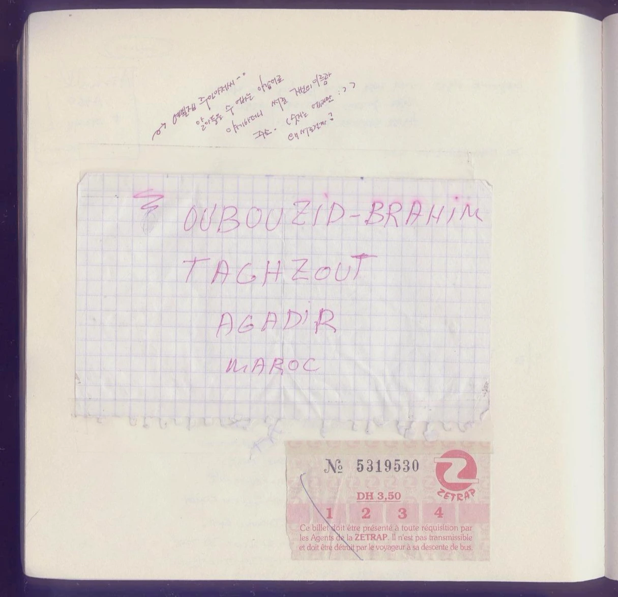 다음 날엔 동네를 둘러보다가 염소를 잡고 있는 할아버지와 아들들을 구경하기도 했는데 귀엽게 생긴 할아버지는 멀뚱히 바라보고 있던 내게 난데없이 본인의 이름과 주소를 적어 건네 주었다. 또 바나나라고는 볼 수 없었던 '바나나 빌리지'라는 귀여운 이름의 옆 동네에 가보기도 했고 또 어떤 날엔 베르베르 족 출신이라는 한 어부에게서 베르베르어를 배우고 또 우리나라 말을 가르쳐 주기도 했다. 또 어떤 날은 낮에 바다로 나가 바위틈에 붙어 있는 고동을 따와 그것을 재료 삼아 저녁으로 때울 스파게티를 만들기도 했다.