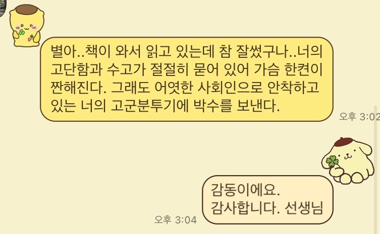 책을 출간하고 가까운 사람들로부터 축하와 연락을 받았다. 사실 연락 준 분들이 많은데 사진첩에 캡처되어 있는 것 중 바로바로 보이는 것을 넣었다. 안 들어갔다고 서운해하기 금지!