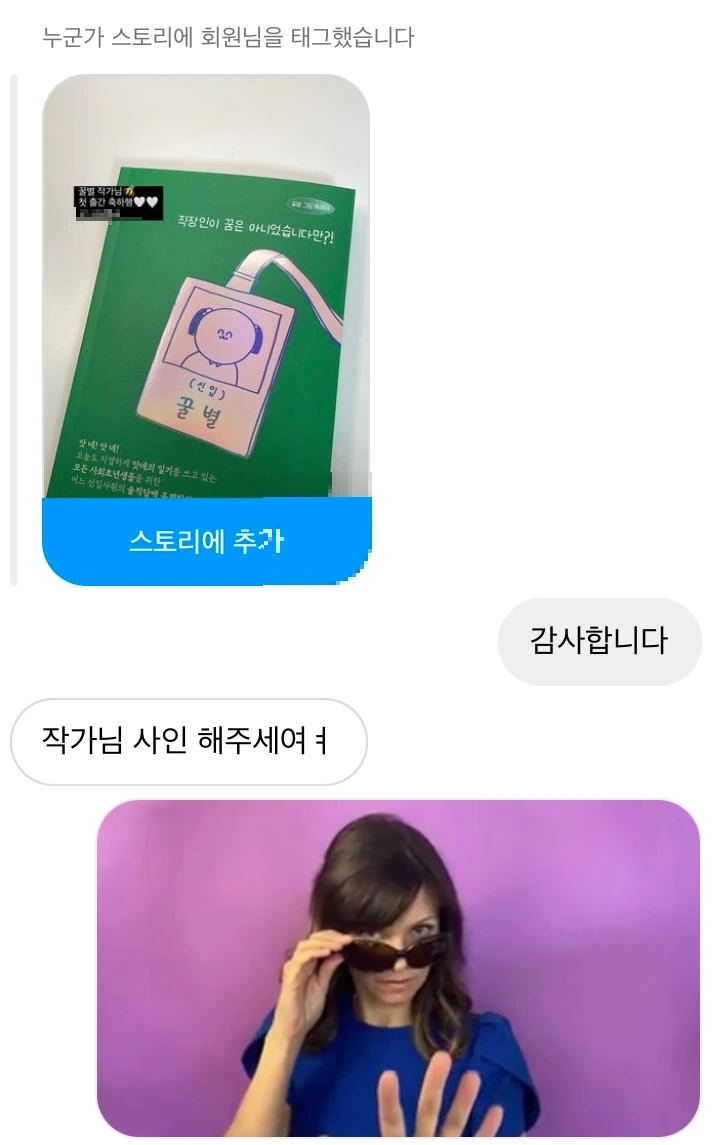 인스타 소식을 보고 읽어주었다고 한다.
