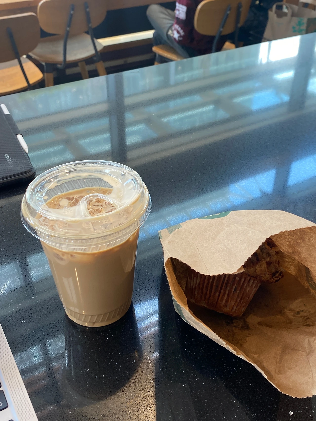 날씨가 어느 정도 개고, 나와 Sara는 스카이트레인을 탔다. 그리고 밴쿠버의 커다란 식자재 마트, 홀썸 푸드 마켓에 있는 카페테리아에 갔다. Sara는 브리또를, 나는 초코 바나나 머핀을 들고 커피를 한 잔 하며 각자 할 일을 했다.