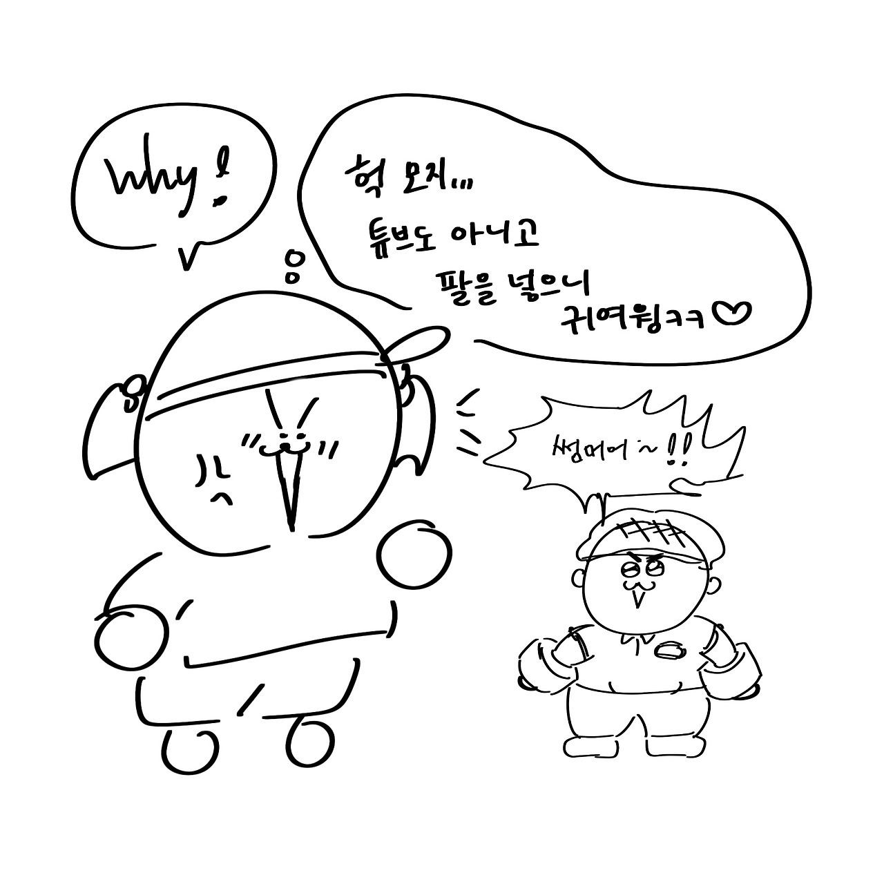 근데 그 팔이..! 통통한 팔이 너무 귀여운 거다. 튜브도 아니고 왜 저렇게 끼어 논거야!! 짱귀여워 진짜!!!