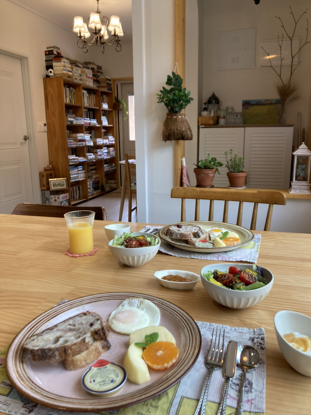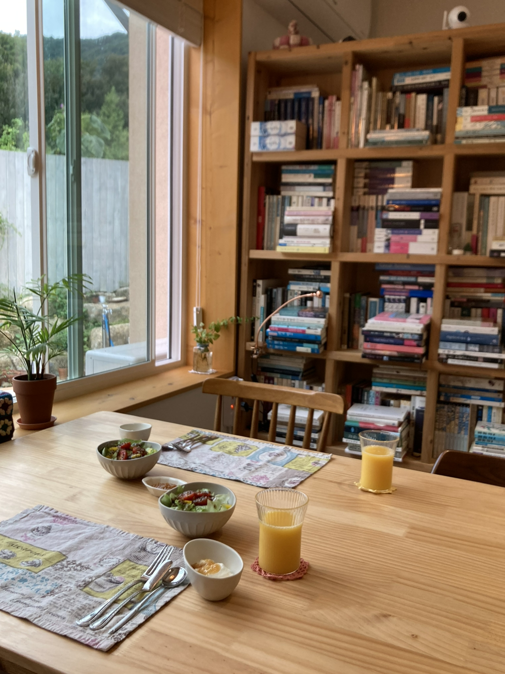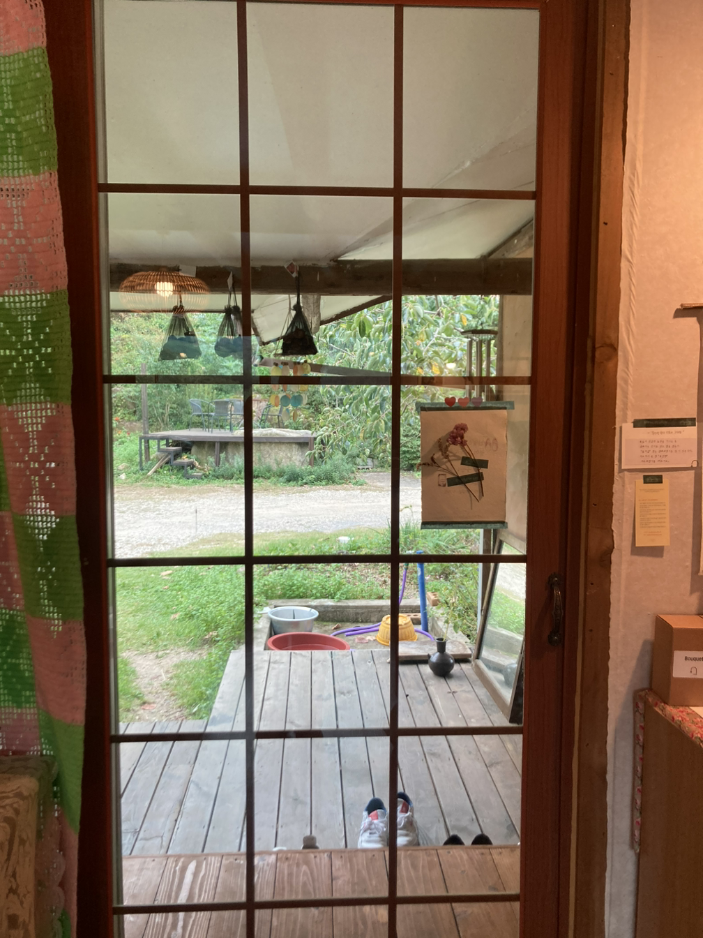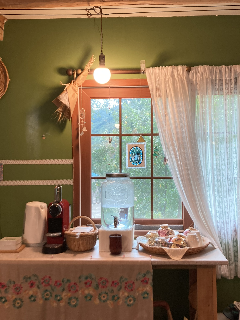 별채 곳곳은 먼지가 하나도 없었다. 잘 닦인 집. 관리가 되는 집에서의 하룻밤은 깨끗하고 쾌적했다. 아침에는 다소 흐렸지만 볕이 은은하게 들어왔다. 왼쪽에도 오른쪽에도 양 옆에도 작고 큰 창문들이 있어서 볕이 들어오는 게 보였고, 밖에는 산 능선에 빛이 어떻게 비추는지, 해는 몇 시에 뜨는지를 단박에 눈치 챌 수 있었다. 고요했고 빛은 불꽃처럼 움직였다. 8시 쯤 되니 호스트 가족들이 움직이는 소리가 났고, 차를 한잔 내려마시기 위해 포트에 물을 끓였다. 컵에는 뜨끈하고 따뜻한 김이 올라왔고 차가 목으로 한 모금 넘어가는 것까지도 세세하게 느끼려고 했다. 작고 사소한 것들까지 눈에 담고, 감각하려고, 그렇게 이 여행에 깨어나기를 기대하게 되었다.