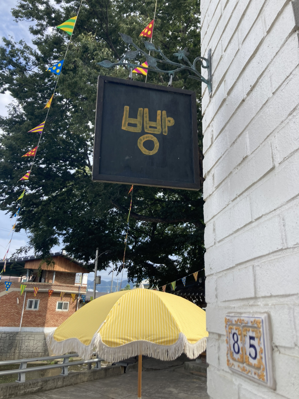 아침을 일찍 시작했기 때문에, 느긋하게 차를 빌리고 시내를 한바퀴 돌았다. 여기에는 이런 게 있구나, 하나로마트는 여기 있구나. 이런 걸 슬쩍 파악하고, 목월빵집 웨이팅리스트에 이름을 올린다. 환해진 아침볕을 맞으면서 사진도 찍고 목월빵집의 귀염뽀짝한 프랑스 어딘가에서 따온 인테리어와 소품을 구경하다가 샛길로 빠졌다. 빵집 옆에는 천변이 있었고 우리는 시간이 남았다. 따라 올라가야지. 옛날 어느 할머니 집 가는 길 같다. 시골 마을이다. 동네에는 늙은 호박이 어어엄청 크게 지붕을 차지하고, 수세미가 내 팔뚝만하게 자라있었다. 무화과가 곳곳에 익어가고 있고 홍시는 다 익어간다. 풍요롭다라는 기준은 각기 다를텐데 나에게는 왜 이런 풍경이 풍성하고 느긋하게 보일까.