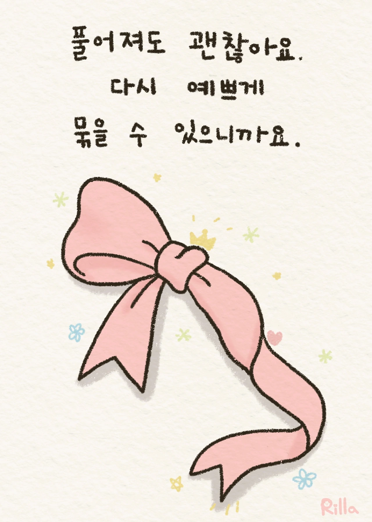 풀어져도 괜찮아요. 다시 예쁘게 묶을 수 있으니까요.