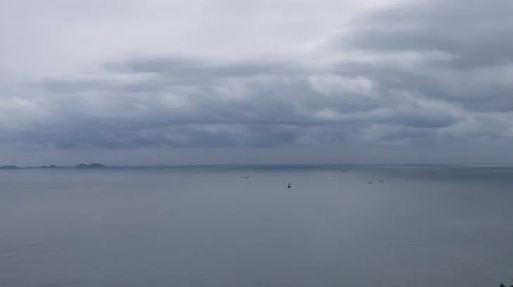 남보라빛으로 흐릿한 인상을 주는 욕지도 풍경을