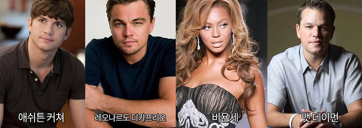 애쉬튼 커쳐, 디카프리오, 비욘세, 맷 데이먼.