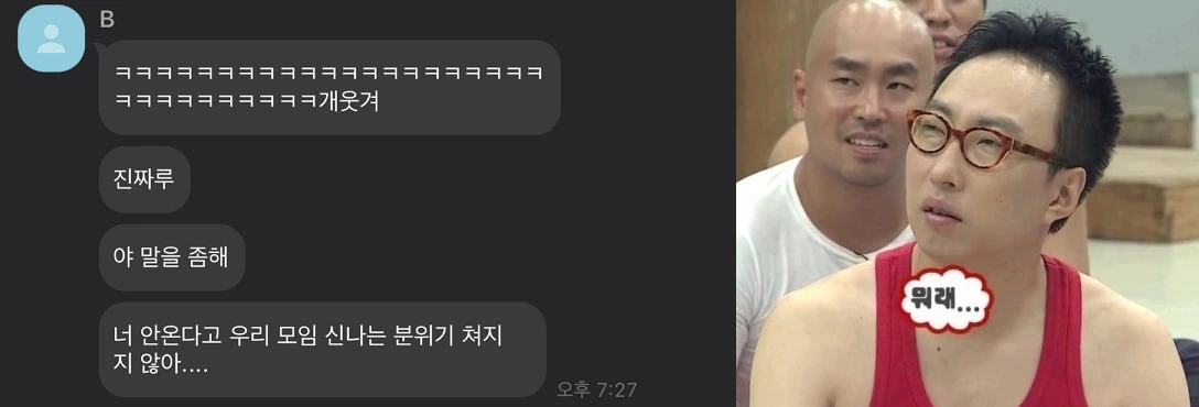 내가 안 가도 분위기 처지지 않는다면서 안 간다니까 왜이렇게 화를 내는 건지... 이후로도 결혼을 했으면 좀 어른이 되라는 둥. 집들이 정식으로 하라는 둥. 열거하자면 기가 차는 카톡이 폭풍처럼 휘몰아쳤다. 애들은 이러다 너네 또 싸우는 거 아니냐며 분위기를 풀으려고 했고, 나는 대응할 가치조차 느끼지 못해 할많하않 모드였다.