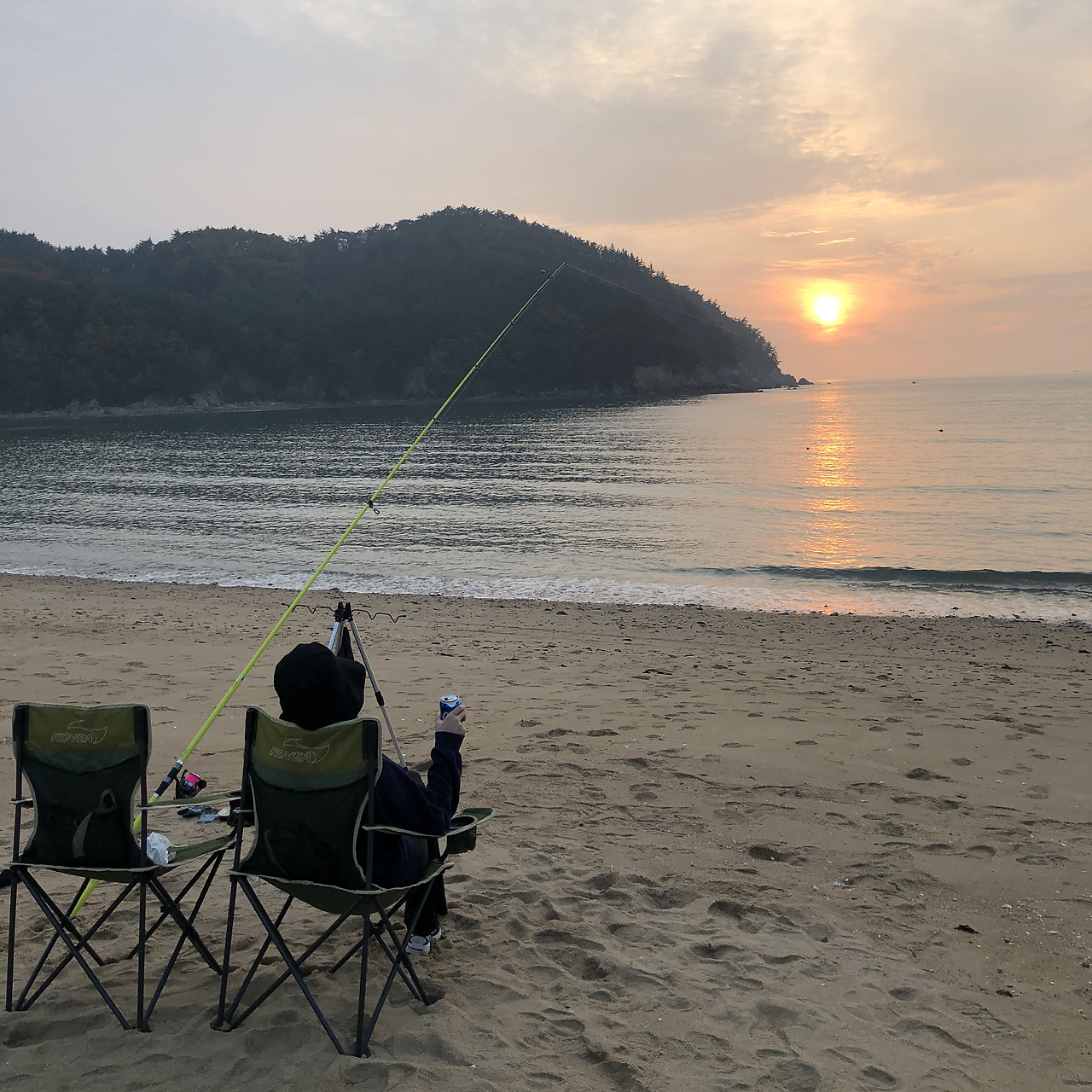 좀처럼 여유 부리기에 관대하지 않은 나는 낚시를 좋아하는 남편 덕분에 원투 낚싯대를 바다에 던져놓고 멍때리는 여유를 즐길 수 있게 되었다. 가만히 있어도 되는 시간의 행복함이 파도처럼 밀려온다. 서해는 해질녘 노을이 정말 아름답다. 시시각각 변하는 하늘과 일정하게 부서지는 파도 소리가 지난 일주일간 집과 회사를 오가며 쌓였던 사소하고도 부정적인 감정들은 흘려보내도 좋다고 다독여주는 것 같았다.