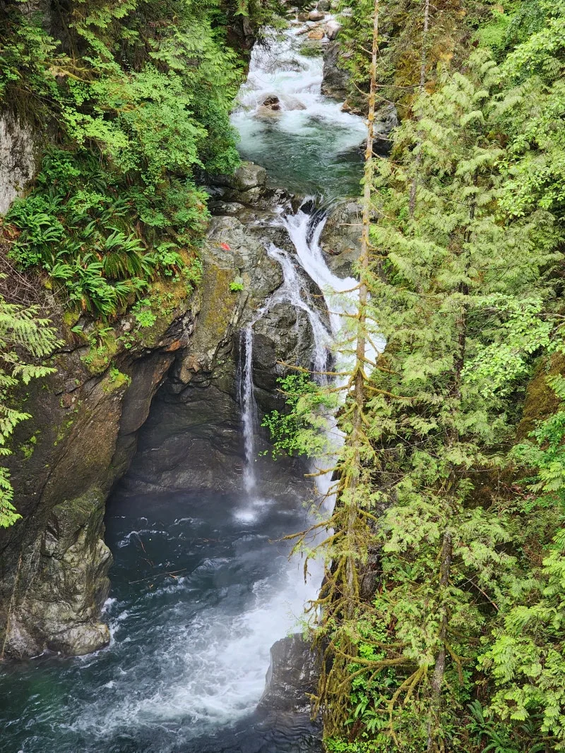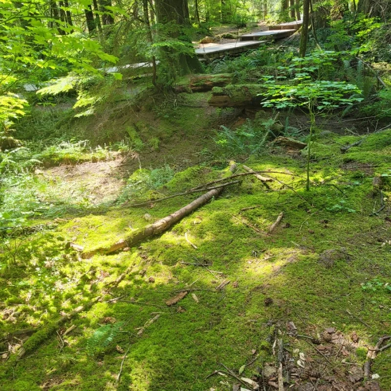 나무마다 독특한 이끼가 있었고 전체적으로 습도가 높은 장소였다. 캐나다 어디를 가든지 나무들이 얼마나 큰지 올려다보면 끝이 안 보이는 게 보통이기도 했지만 이곳의 나무는 더욱 큰 느낌이었다. 나무들의 뿌리들도 땅 위로 올라와서 신비로운 느낌마저 드는 장소였다.