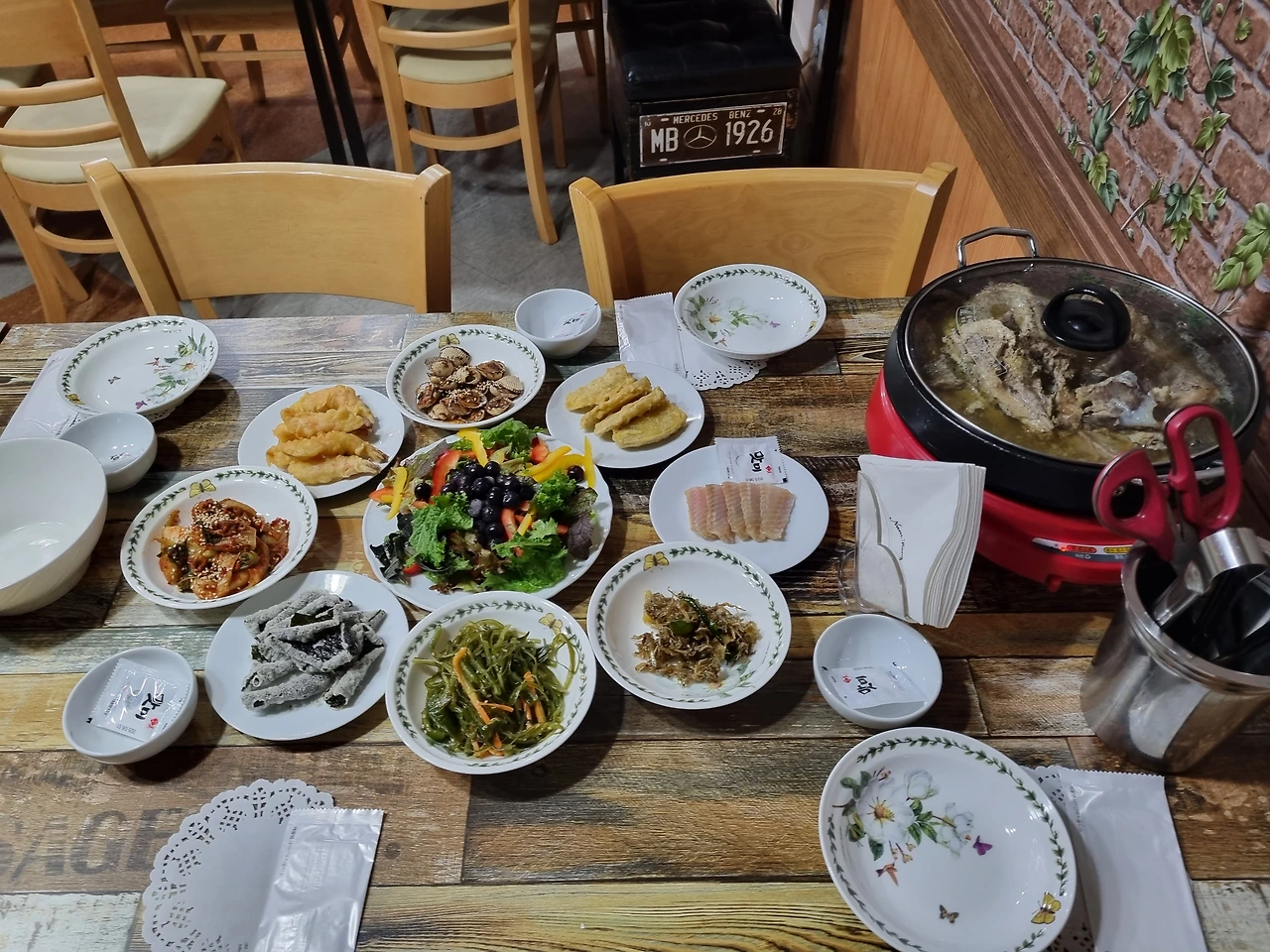황칠닭백숙, 반찬이 정갈하고 맛있다. 남강레스토랑의 특별한 맛에 매료되어 다음에 거문도여행을 와 가족과 함께 들려봐야겠다는 생각이 들었다. 한식양식일식등 베트남쌀국수까지 다양한 음식을 맛볼 수 있는 곳이다.
