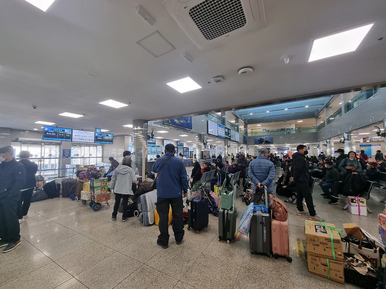 출발 시간은 1시 50분. 12시 50분부터 다들 줄을 서기 시작했다. 1시 20분 출발 30분 전이 되자 탑승을 시작한다. 좌석이 있어서 정해진 좌석에 앉으며 된다고 한다. 기다리고 서있던 분들의 좌절과 원망의 말이 들려온다.
