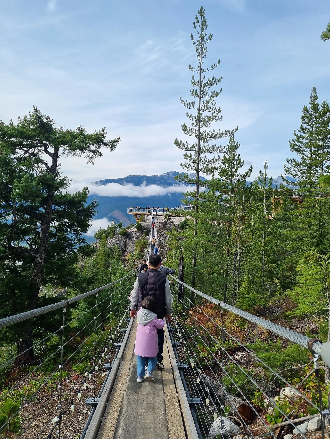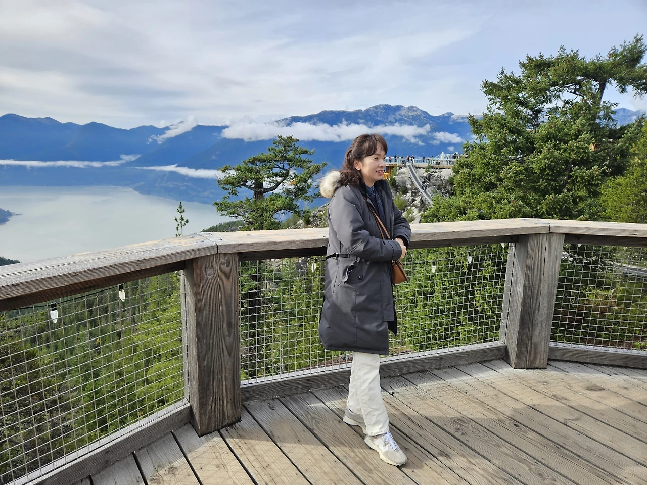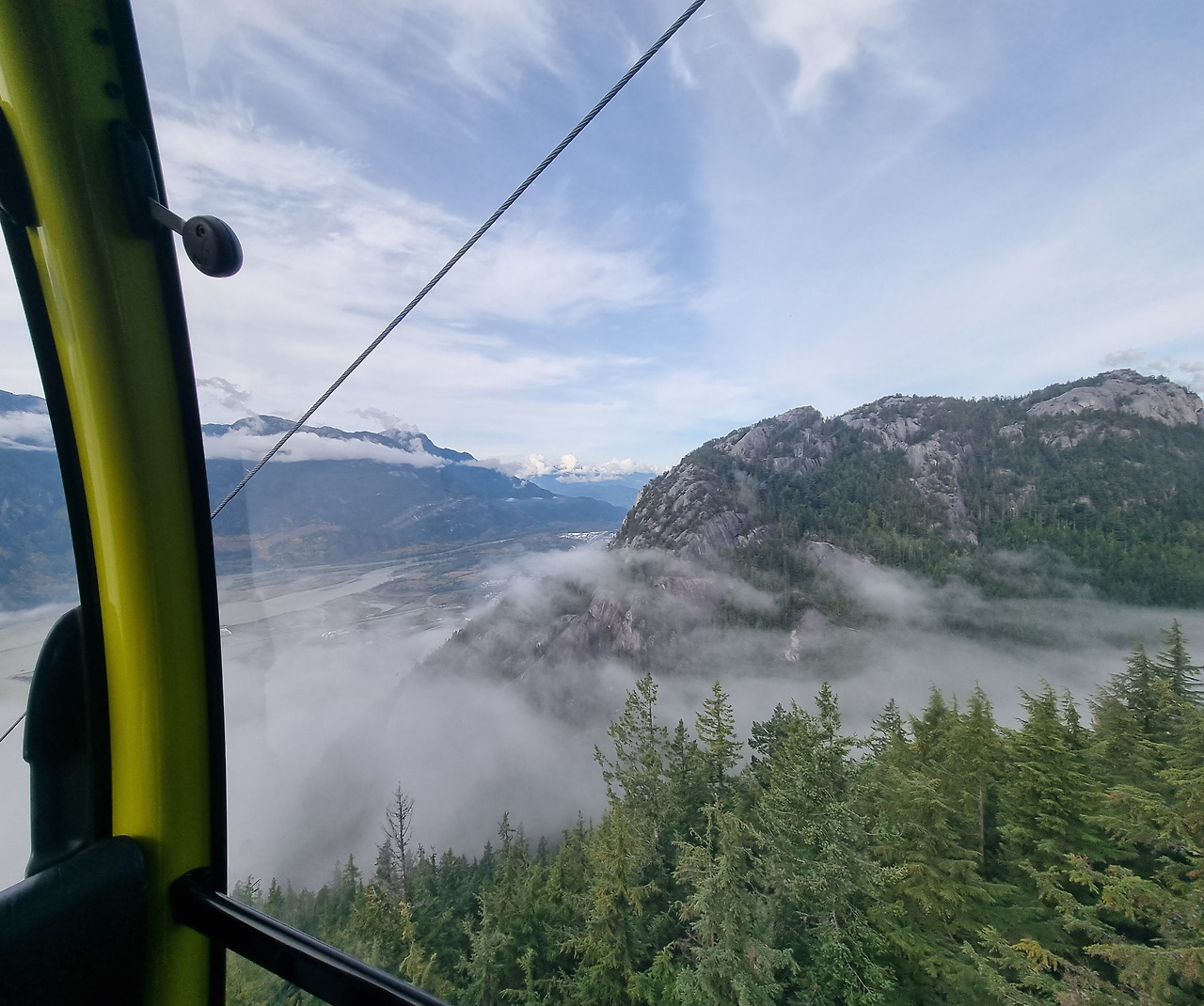 캐나다 여행 블로그에서 자주 못 보던 여행지라서 어머 이런 것도 있었구나 했던 곳이다. 곤돌라 탑승비용이 많이 비싸서 유학생이나 워홀 하시는 분들 입장에서는 부담이 되는 가격이겠구나 하는 생각이 들었다. 지연언니네가 구매해 주셔서 너무나 감사하고 미안한 마음 더하기 황송한 마음으로 탑승했던 씨 투 스카이 곤돌라. 아주 가파른 산을 곤돌라가 빠르게 올라간다. 해발높이가 있다 보니 비행기를 탈 때처럼 귀가 먹먹해지곤 한다. 올라가면서 보는 풍경은 장관이다. 구름이 산마다 신선들이 타고 다니는 모양새로 곳곳에 뿌려져 있다.