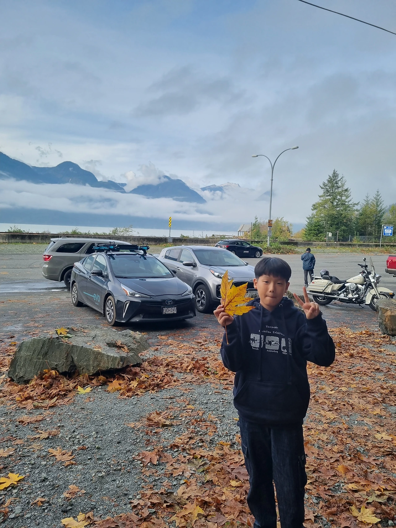 단풍나무 잎들의 크기가 성인 남자보다 크기로 소문난 내 손바닥 보다 더 크다. 밴쿠버 시내에서 벗어나 자연이 좋은 광경을 보러 나오니 나무의 길이는 하늘 높은지 모르고 끝도 없이 길고 산은 우람하고 웅장하게 펼쳐져 있다. 바다인가 하고 지나온 곳들은 호수이기도 했다. 이래서 자연의 나라이구나 싶었던 풍경들이 한없이 펼쳐진다.