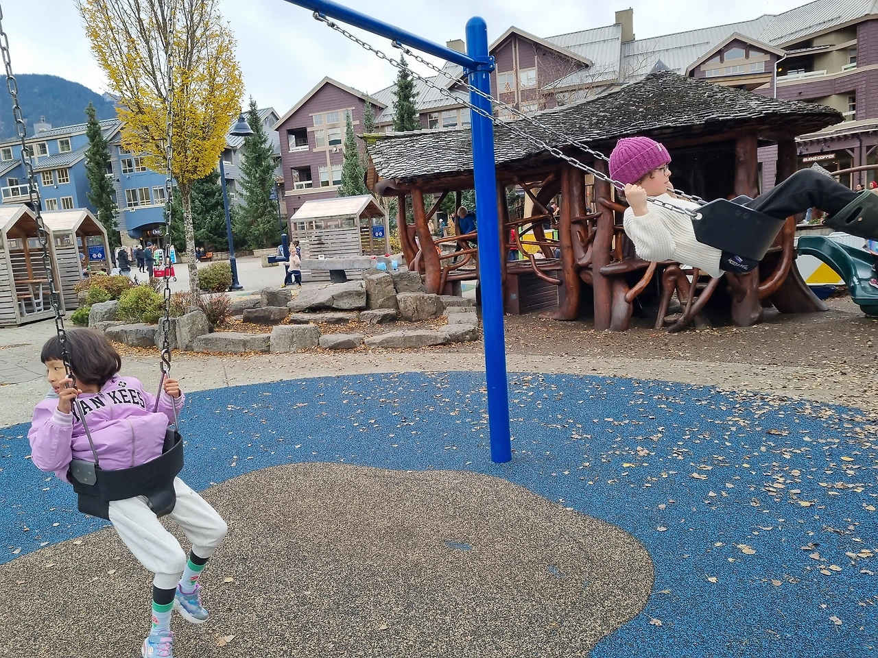 딸과 엄마들은 휘슬러 빌리지 안에 있는 실외 놀이터에서 시간을 보내기로 했다. 어디서나 누구 하고나 언어와 말이 통하지 않아도 잘 노는 딸은 놀이터에서 쌀쌀한 날씨였음에도 불구하고 캐나다의 다양한 인종의 아이들과 3시간이 넘게 쉬지 않고 노는 모습을 보였다. 캐나다는 놀이터가 잘 되어 있어서 아이들이 어디서나 즐겁게 놀 수 있는 장점이 있는 나라이다. 캐나다 스쿨버스인 노란 버스도 보면서 학교 옆 잔디밭이나 놀이시설에서 아이들이 자연과 놀이를 하는 모습을 보니 아이들이 살기에는 정말 좋은 나라이구나 싶었다. 한국에 맡기고 올까? 고민했던 딸이 캐나다에 와서 가족중에 제일 신나게 놀고 여행을 즐기니 감사하기도하고 딸이 살기에 캐나다가 한국보다 더 좋은게 아닌가 고민이 되기도했던...
