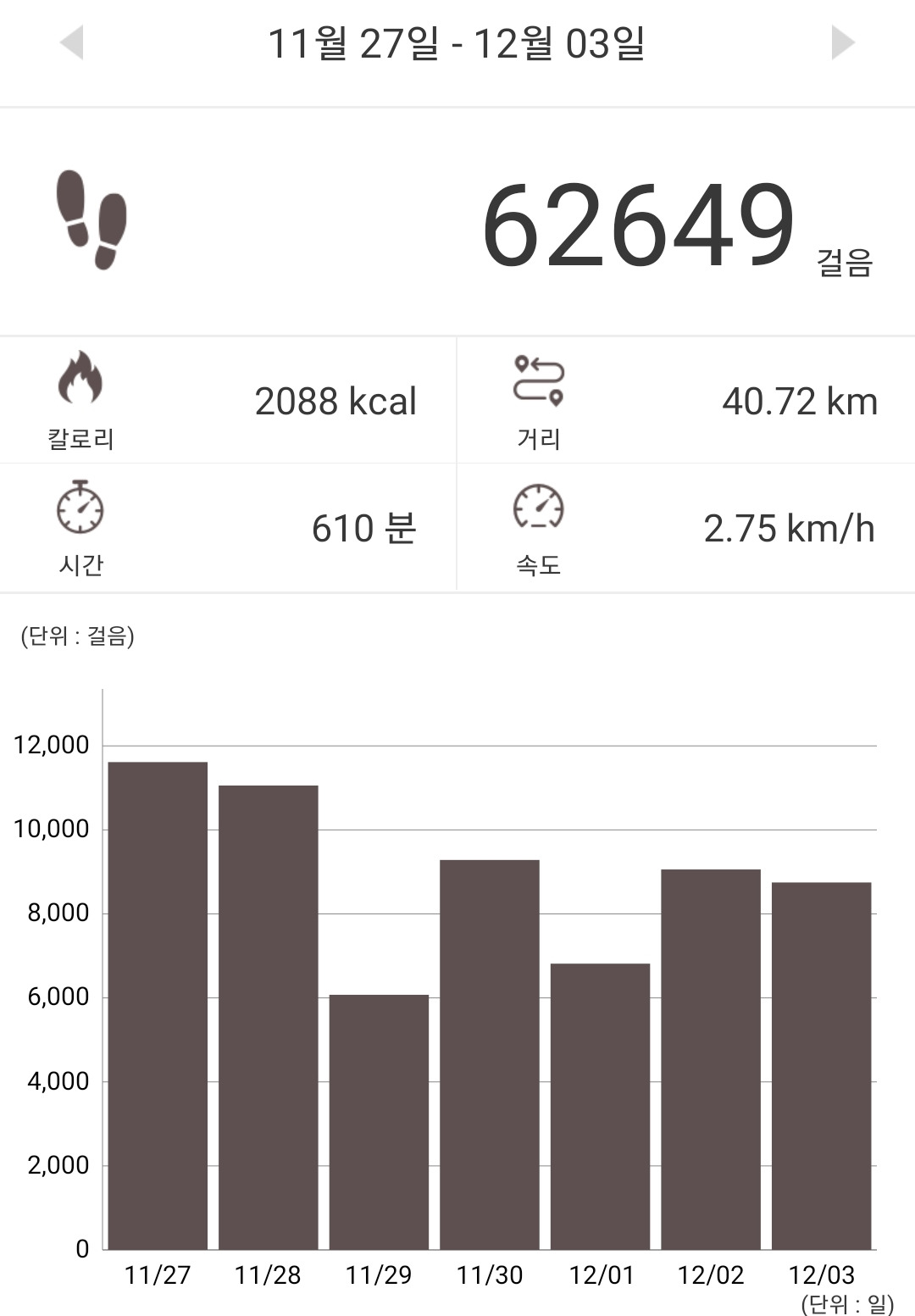 일주일 동안 성공하는 경험을 가지니 계속해서 도전해보고 싶은 내적동기도 갖게 되었다. 이번주 또한 6 천보 이상 걷기를 하려고 한다. 남편과 저녁시간이나 시간이 날 때마다 함께 이야기를 하면서 걸으니 부부사이도 좋아진 듯하다. 그리고 쌀쌀하긴 하지만 아름다운 계절인 가을을 걸으며 감상하는 눈의 즐거움도 느끼고 있다.
