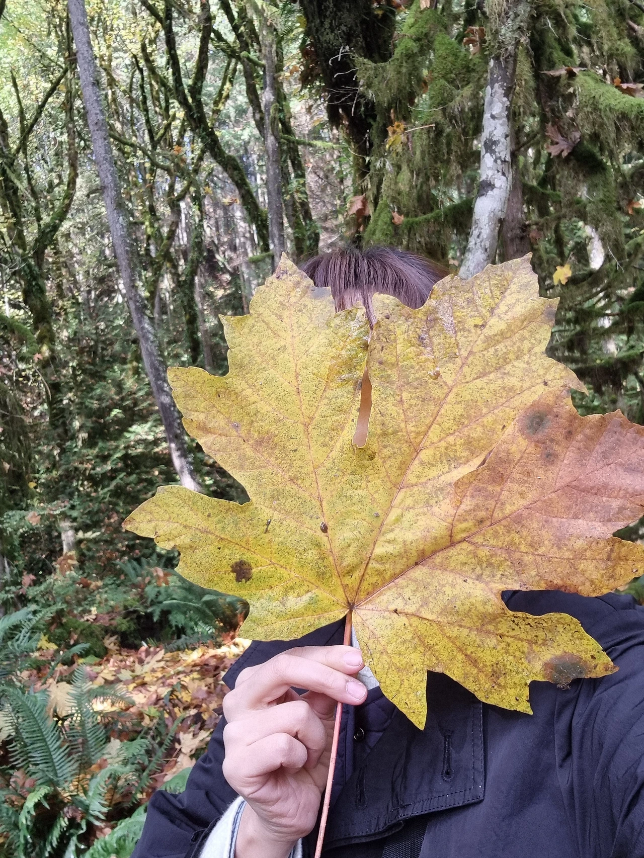 떨어진 단풍잎이 얼마나 큰지 내 얼굴이 다 가려진다. 햇빛이 나오자 얼굴에 기미가 생기려나 싶어 나뭇잎을 햇빛가리개 삼아 들고 다녔다. 역시 대륙의 스케일답게 뭐든지 큰 캐나다이다.