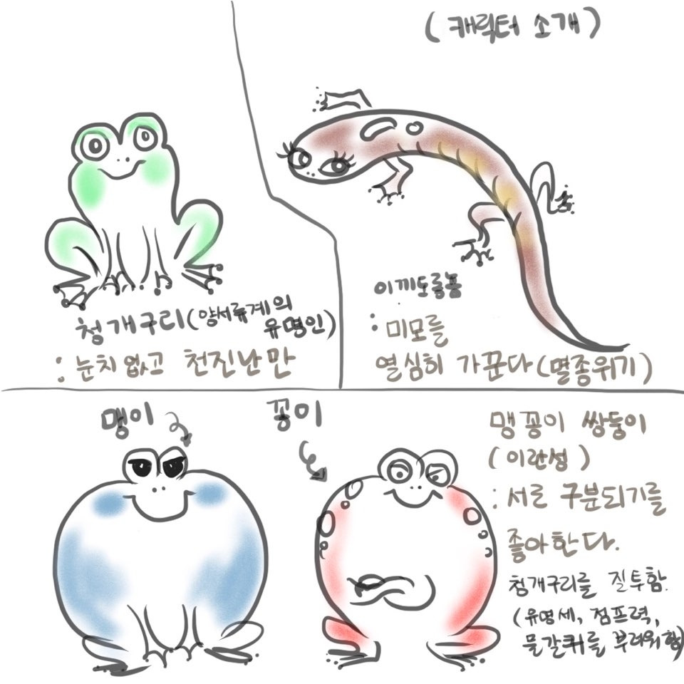#물반땅반 #땅반물반 #자연사랑웹툰 #자연사랑 #이끼도롱뇽 #환경보호 #멸종위기 #양서류 #습지생태 #습지보호 #맹꽁이 #청개구리 #희귀종 #공모전에내려다가 #시기놓침 #용맹이