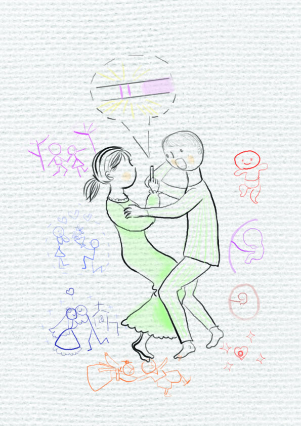 '...두 줄이네!'신랑은 잠시 멍하게 있다가 진짜? 를 연발하며 나를 바라보았다. '두 줄이야!'나는 실제로 이 대사를 다시 외쳤다. 철없던 두 신혼부부는 첫 번째 결혼기념일을 앞두고 계속 두 줄이야 를반복했다.
