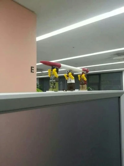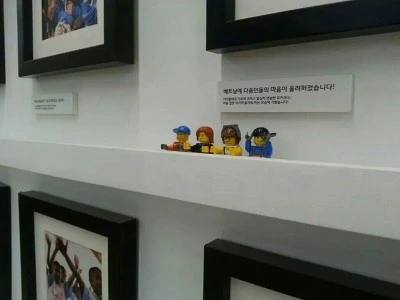 그림을 그릴까, 요상한 조각품을 배치할까.. 등등 숱한 의견들이 난무하면서 쉽사리 '무얼'해 볼 지 결정이 안났죠. D데이(다음송년회때 맞춰 준비를)는 다가오고, 판을 키우기엔 여러모로(돈, 시간, 인원, 상황 등) 부족해 심플 버전을 택했습니다. 컨셉은 '베시시'. 즉~ 어느날 문득 옆을 보았더니 함박웃음이 아닌 엷은 웃음을 머금을 수 있는 '무언'가를 해 보잔 결론. 방법은 작디작은 레고 인형을 사무공간 곳곳에 배치하는 것입니다. '토이스토리' 같은 것이죠. 우리가 퇴근하면, 누군(?)가는 어둠속에서도 꾸준히 이 공간에서 움직(놀고 일하고~)인다는 상상~ 그 결과는... 아래에 있습니다.