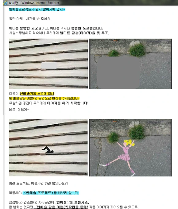 이 프로젝트의 시작은 소셜에서 곧잘 보이던 길거리 아트였습니다.