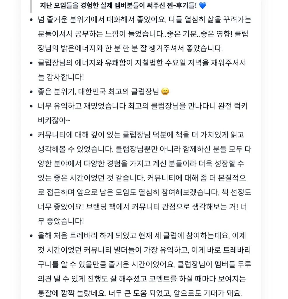아래는 이전 모임에 참여한 분들이 남긴 리뷰입니다.