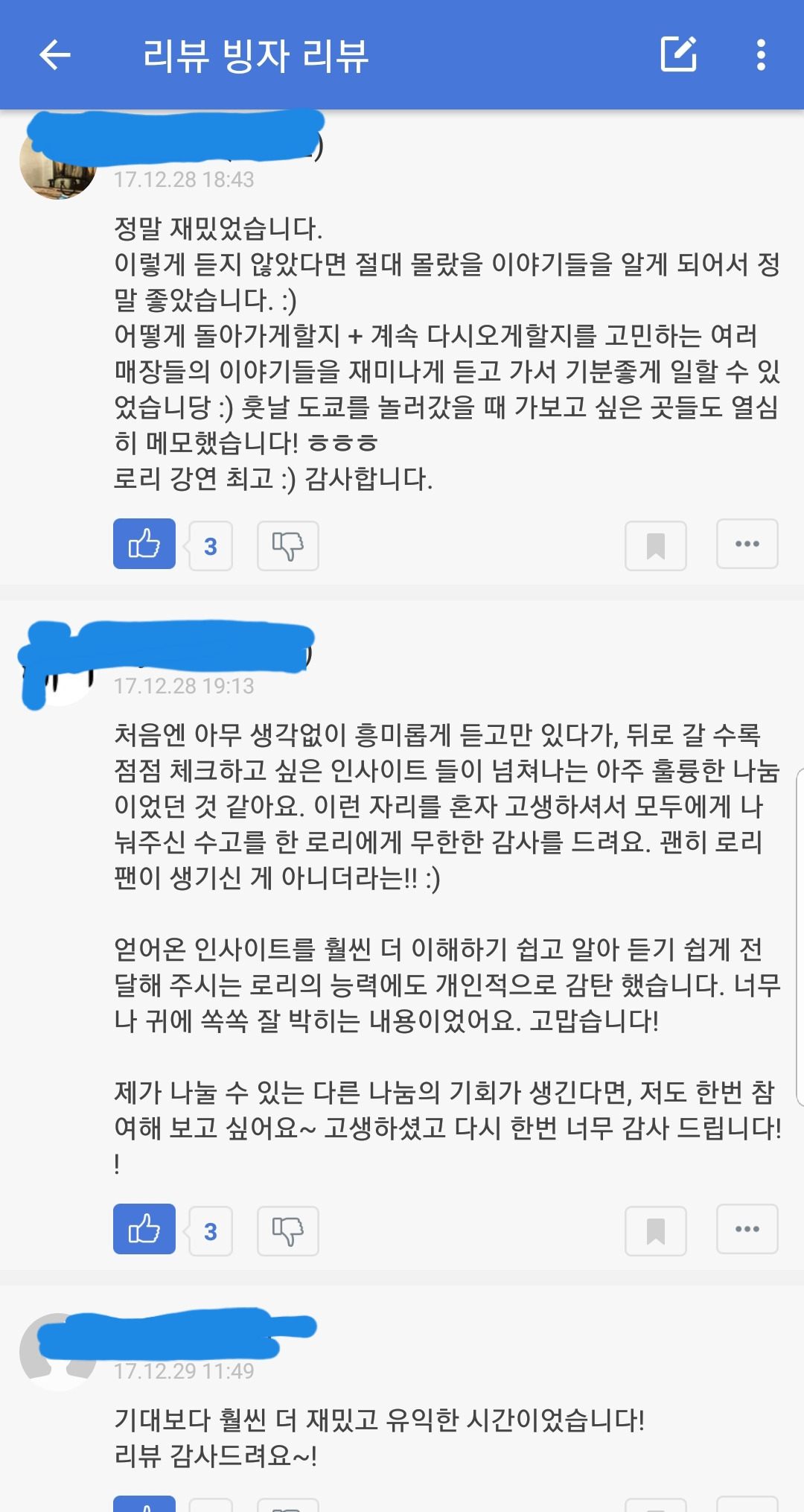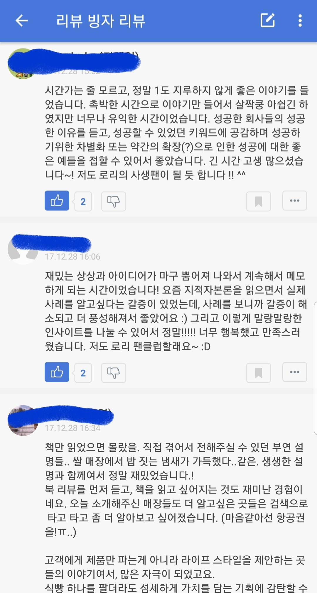 아래는 카카오에서 진행했을때 받은 리뷰에대한 리뷰다.