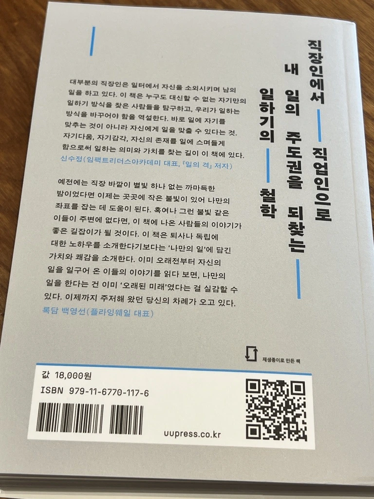 7) 책 _ 유유출판사 [자기만의 일] 추천사 (띄지라니!! 책 뒷면이라니^^)