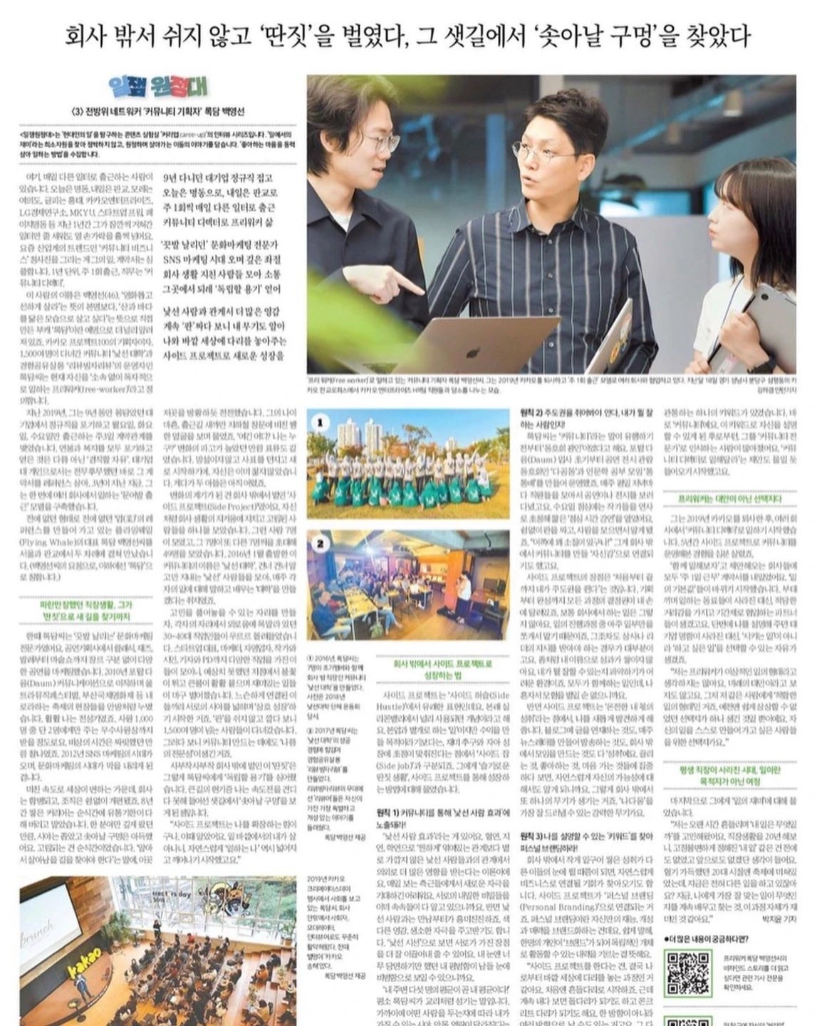 2) 10월 중앙일보 - 퇴근 뒤 벌인 딴짓. 카카오 기획자 록담의 '진짜 내 일' 찾는 법