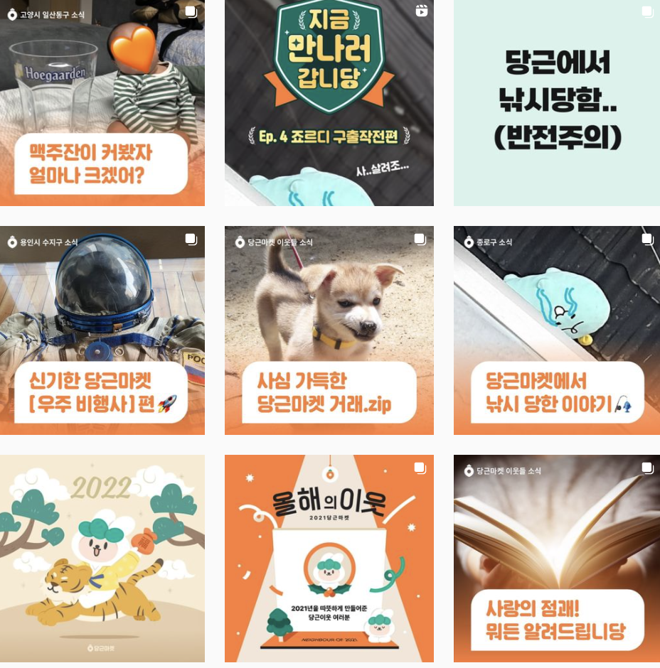 당근마켓 인스타 https://www.instagram.com/daangnmarket/ (당근은 3만3천)