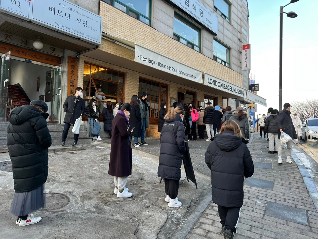 4) 런던베이글뮤지엄만큼 그 앞은 인산인해. 하지만 우린 테이크아웃이라 바로 픽업해 그곳을 떴다.