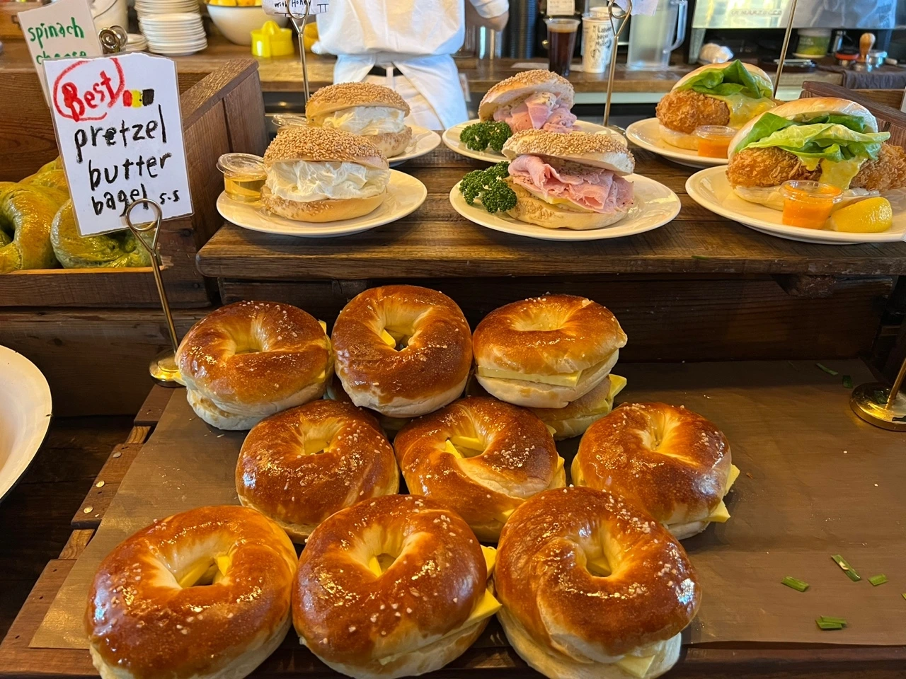 5) 정말 9시가 되어, 주문을 할 수 있었다. 입장하란 메시지를 받고 줄을 섰고, 이내 눈 앞에 다양한 베이글이 등장했다. 마님은 이미 어떤 베이글을 원하는지 톡을 보내왔다. 그가 원하는 걸 담고, 내가 먹고 싶은 걸 담았다. 기다림에 대한 보상(?)으로 욕심을 냈다. 베이글 하나, 스프, 그리고 크림치즈를 더 담았다.