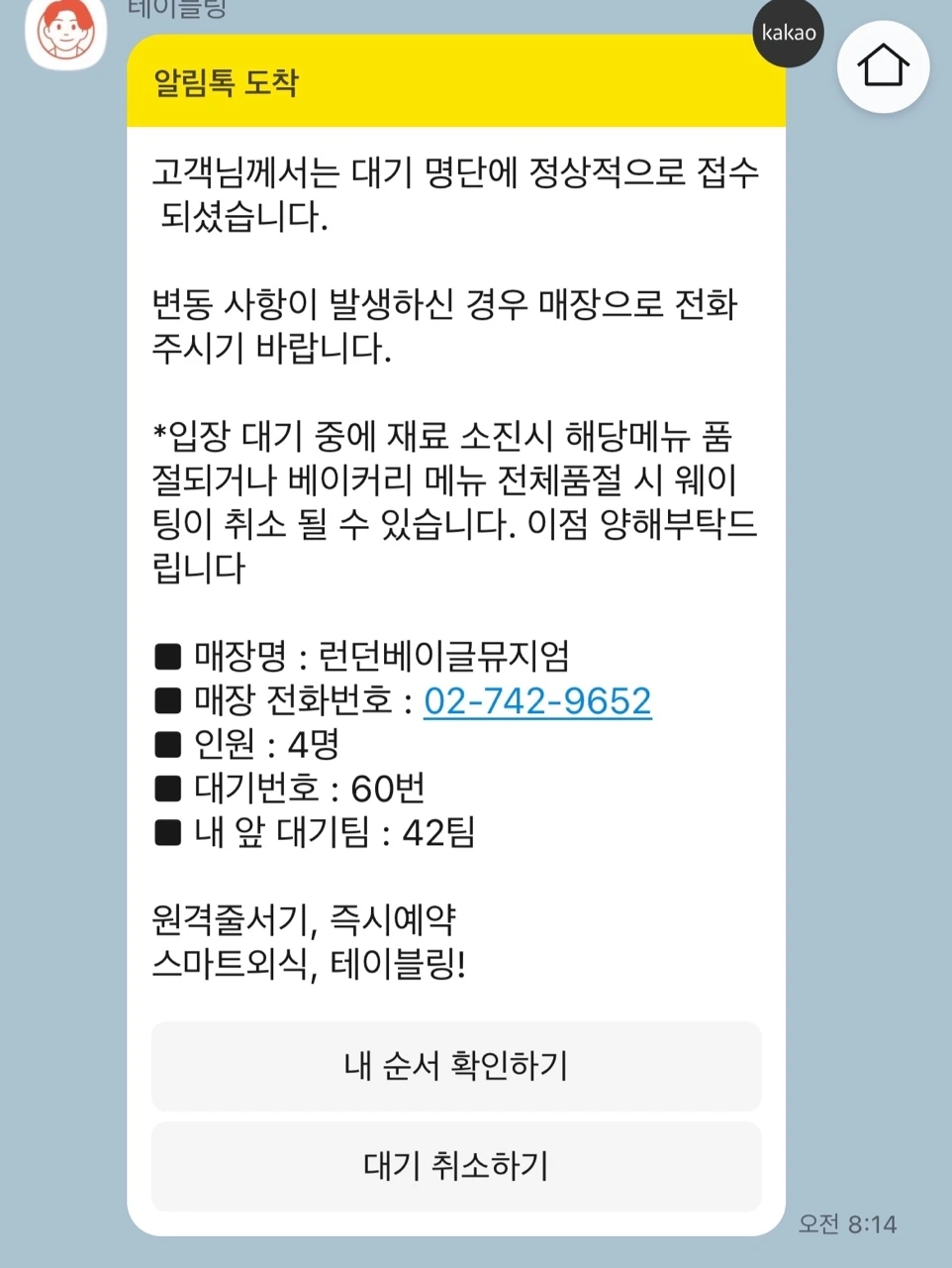 도착하고, 대기표를 뽑고 입장까지 50분이 걸렸다.
